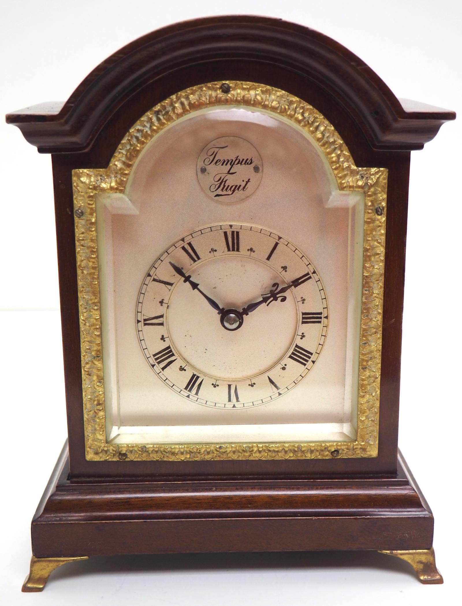 Impressive Mahogany Edwardian Bracket Clock Timepiece Mantel Clock
