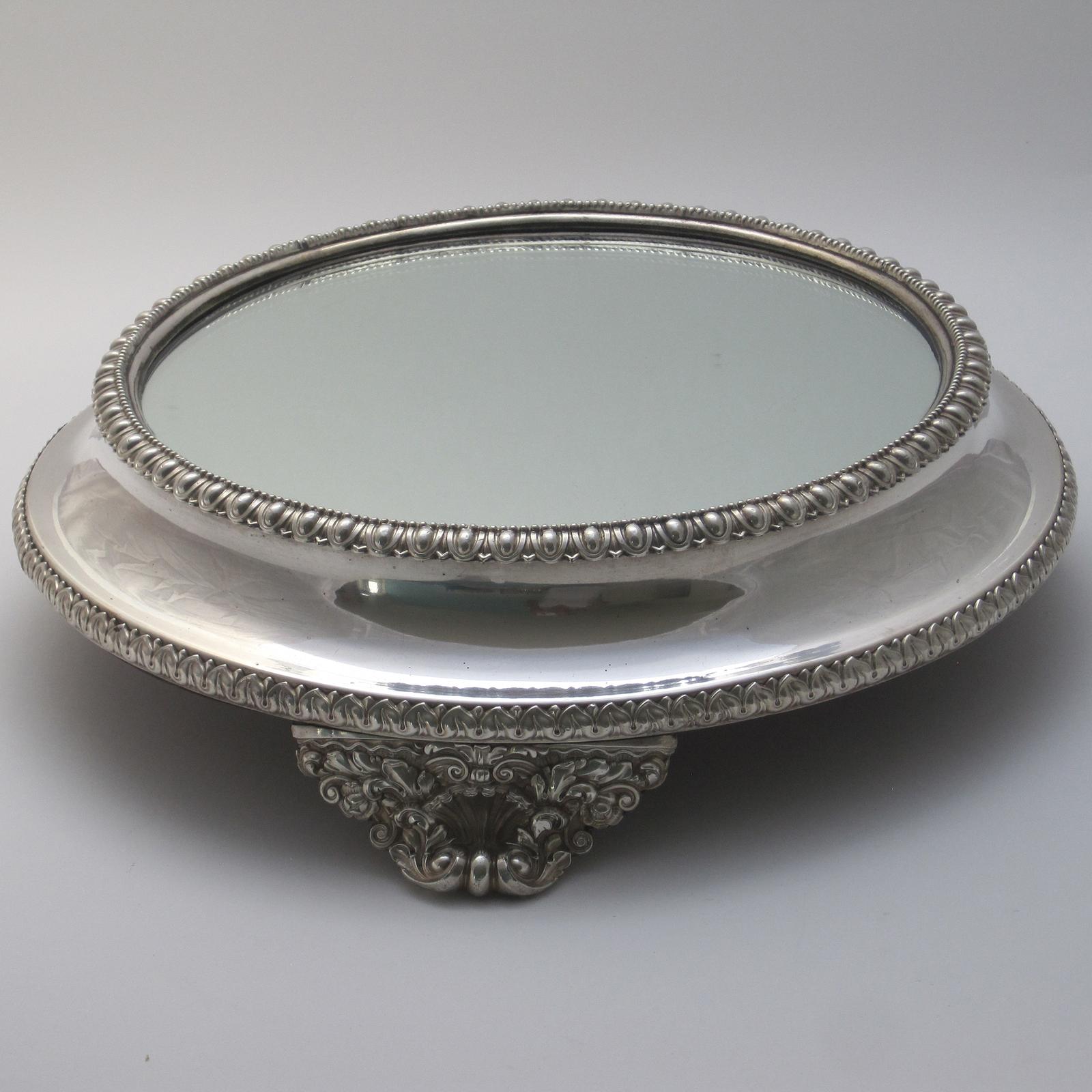 Impressive Old Sheffield Plate Circular Mirror Plateau or Cake Stand