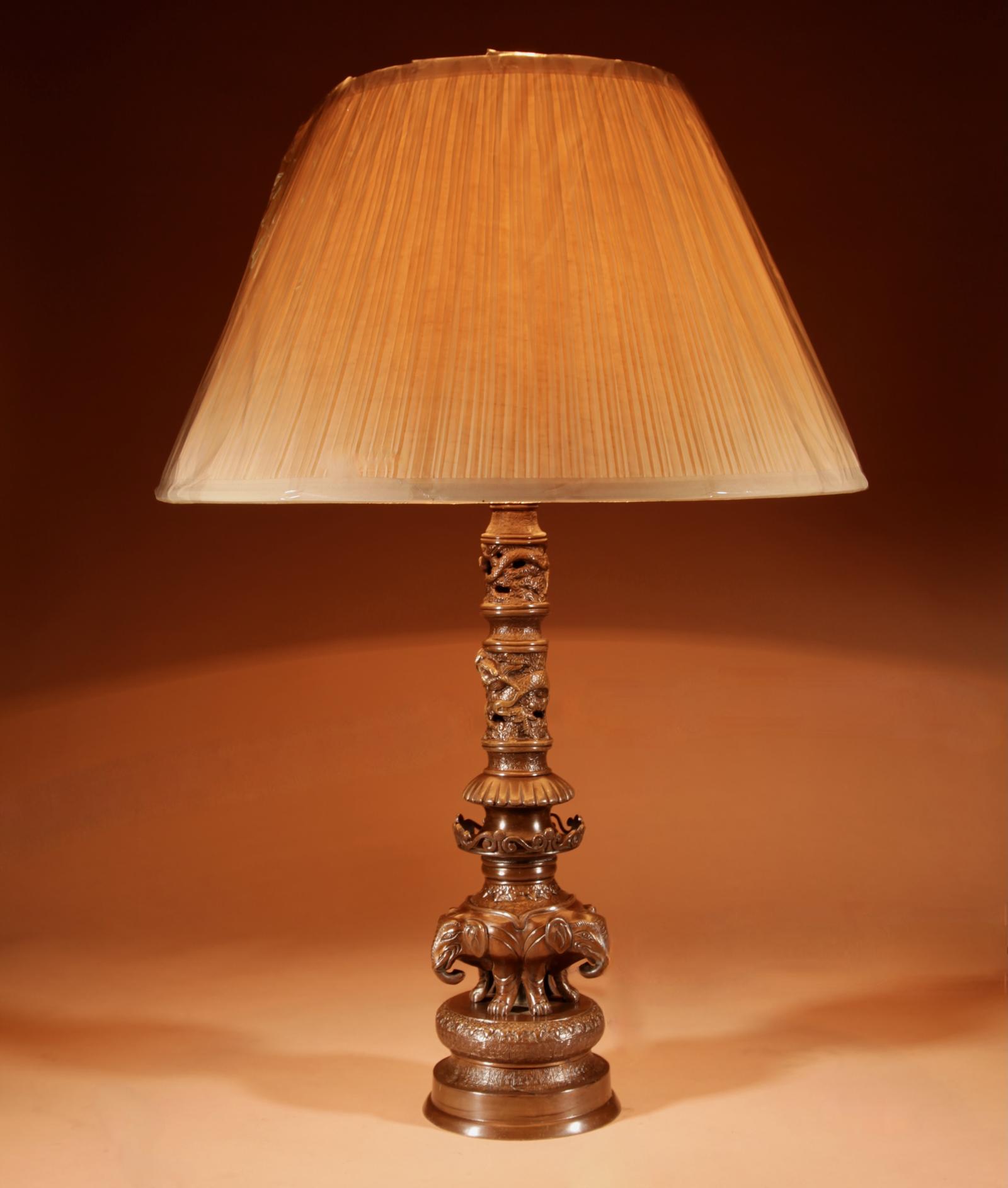 Impressive Original Bronze Japanese Elephant Table Lamp, Meiji Period 1868-1912