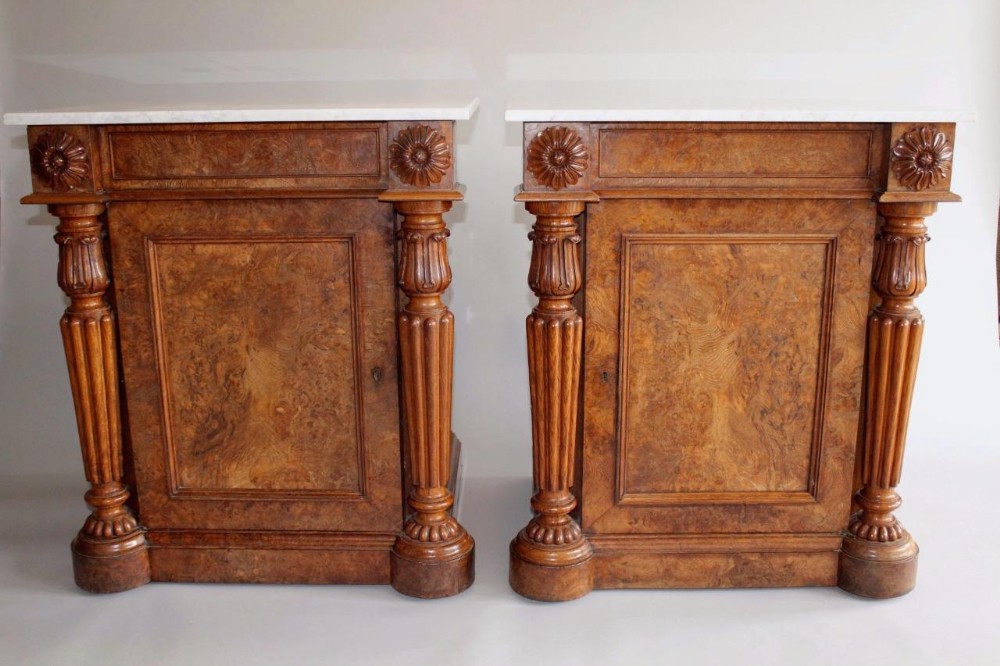 Impressive Pair of Antique Gillows Walnut & Marble Cabinets (1 of 1)
