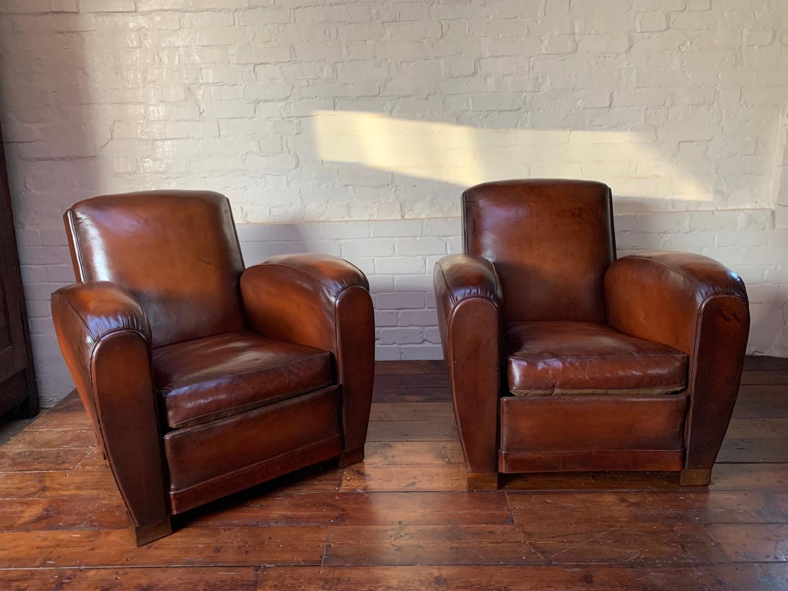 Impressive Pair of French Leather Club Chairs, Art Deco Models c.1930