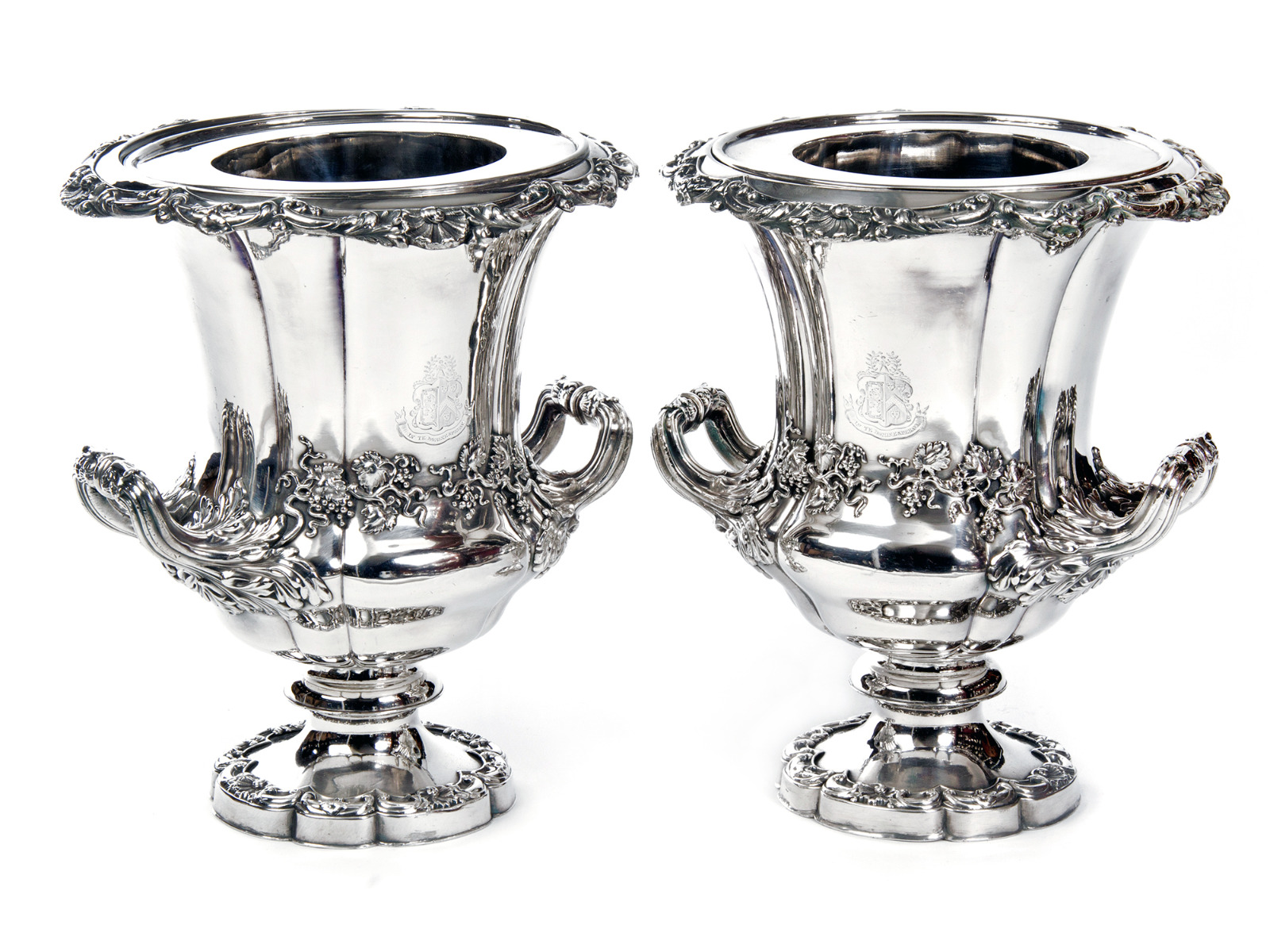 Impressive Pair of Old Sheffield Plate Campana Shaped Wine Coolers (1 of 5)