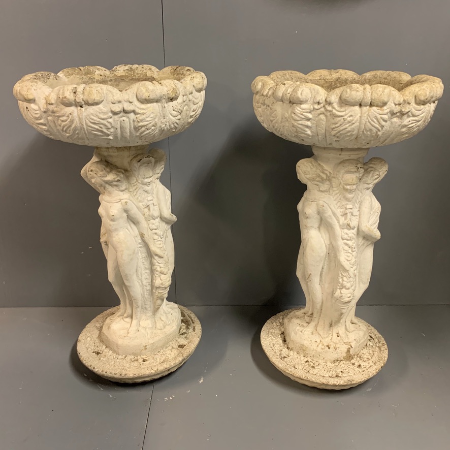 Impressive Pair of White Washed Garden Urns