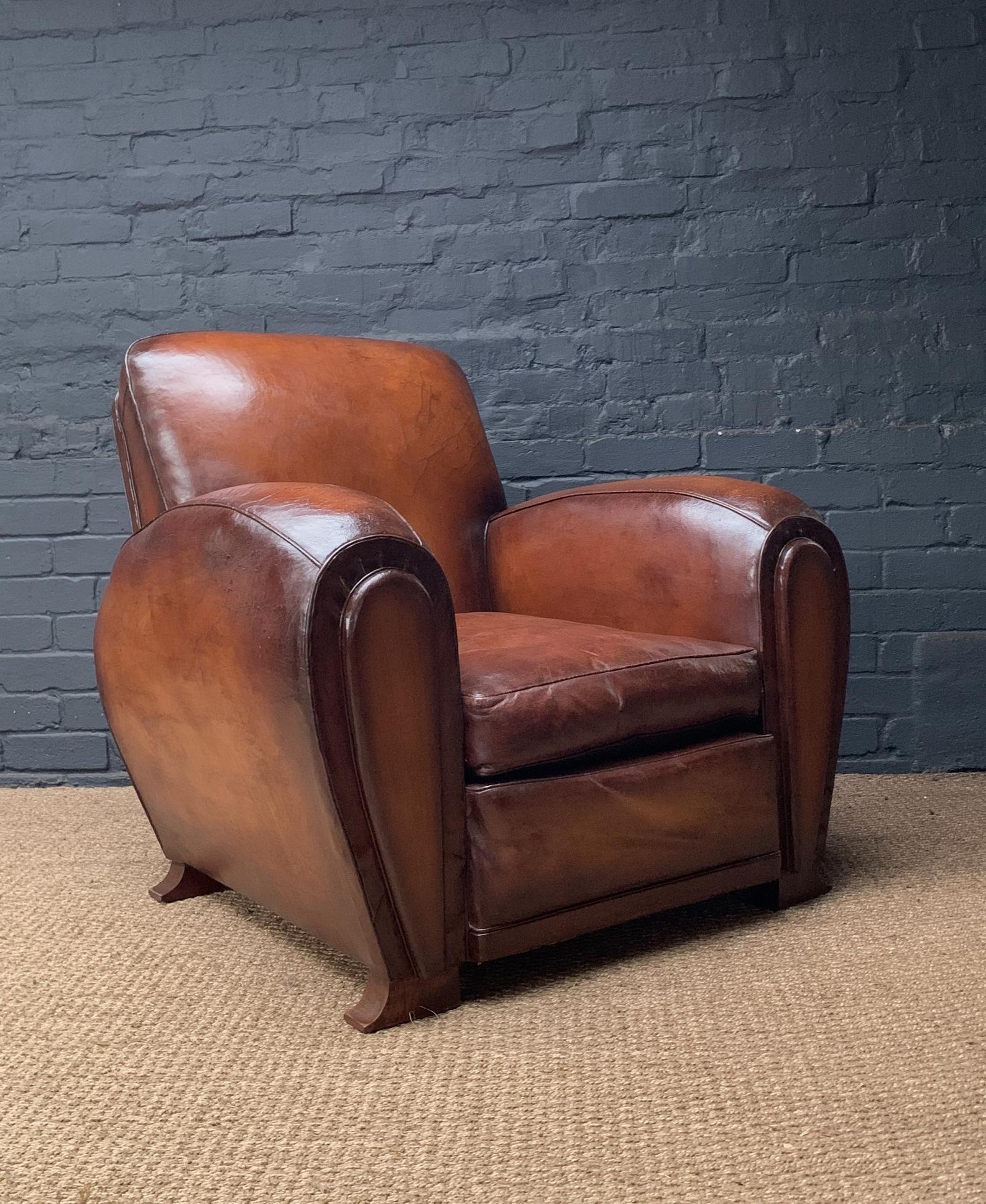 Impressive & Rare Art Deco French, Leather Club Chair c.1930