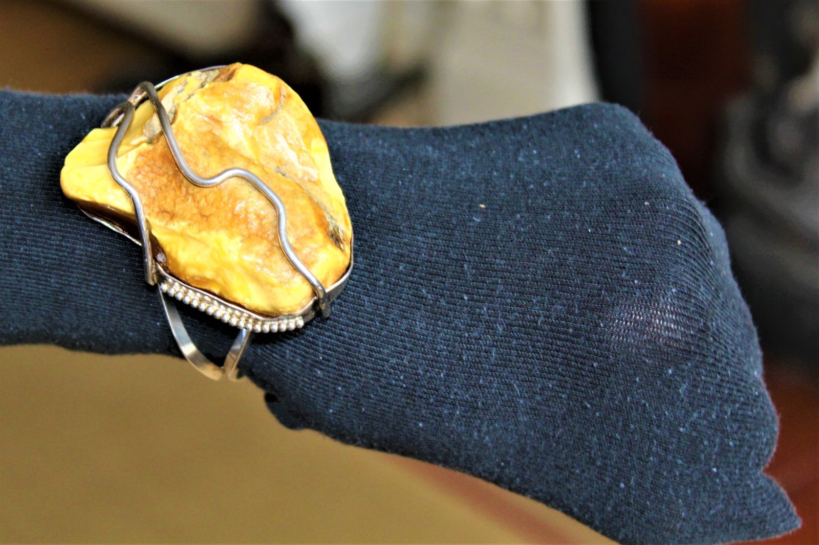 Impressive Silver Mounted Raw Amber Bracelet. the Amber Measures 6.5cm High 5.5cm Wide 2cm Deep