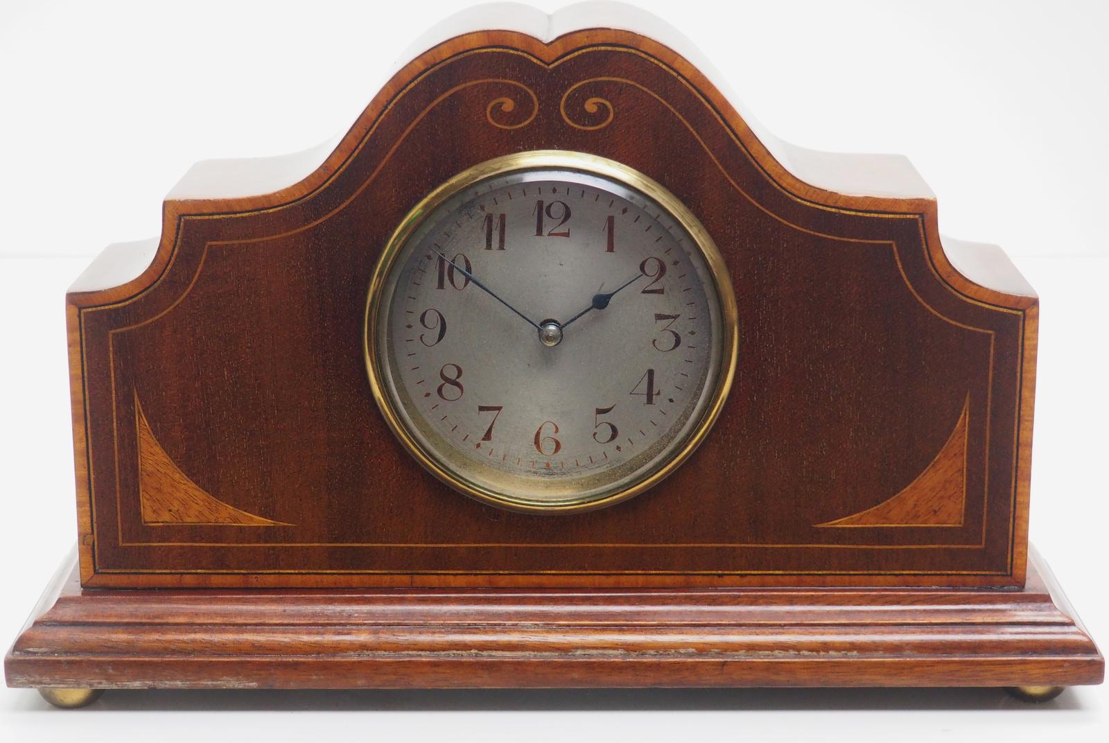 Impressive Solid Mahogany Edwardian Timepiece Clock with Satinwood Inlaid Decoration (1 of 9)