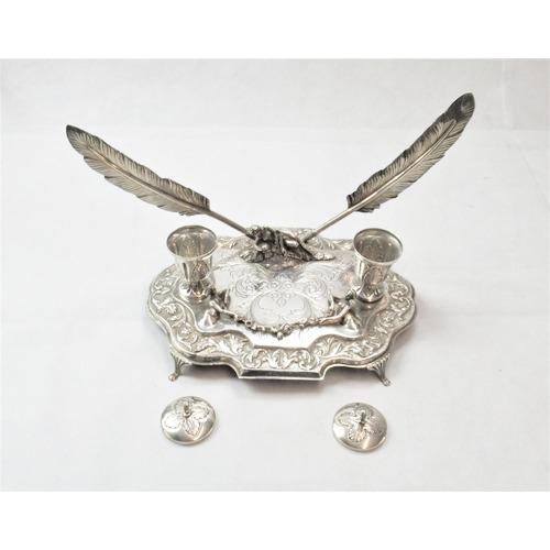 Impressive Sterling Silver Inkwell, approximately 42 x 21cm.