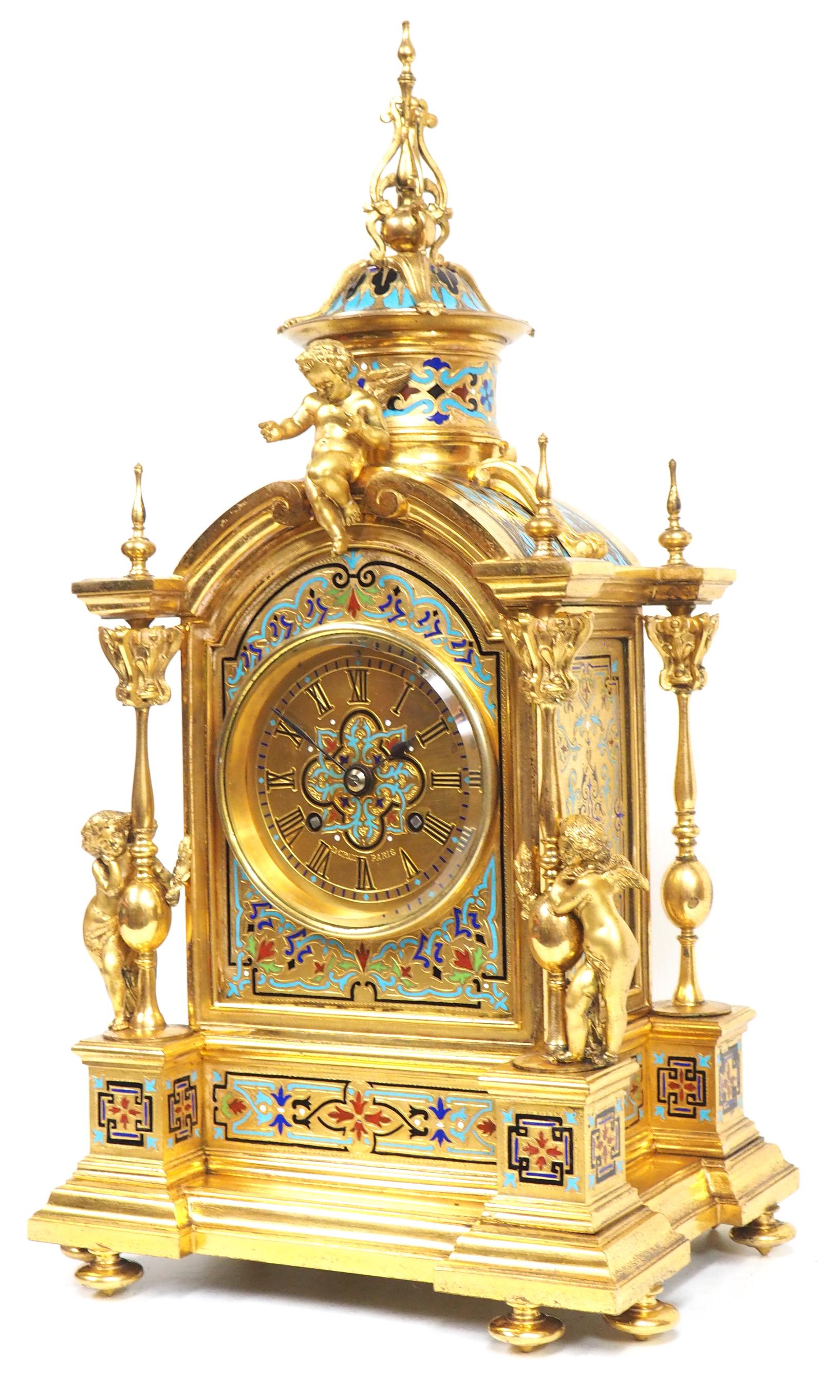 Incredible Antique French Champlevé Ormolu Bronze 8 Day Striking Mantel Clock c.1860
