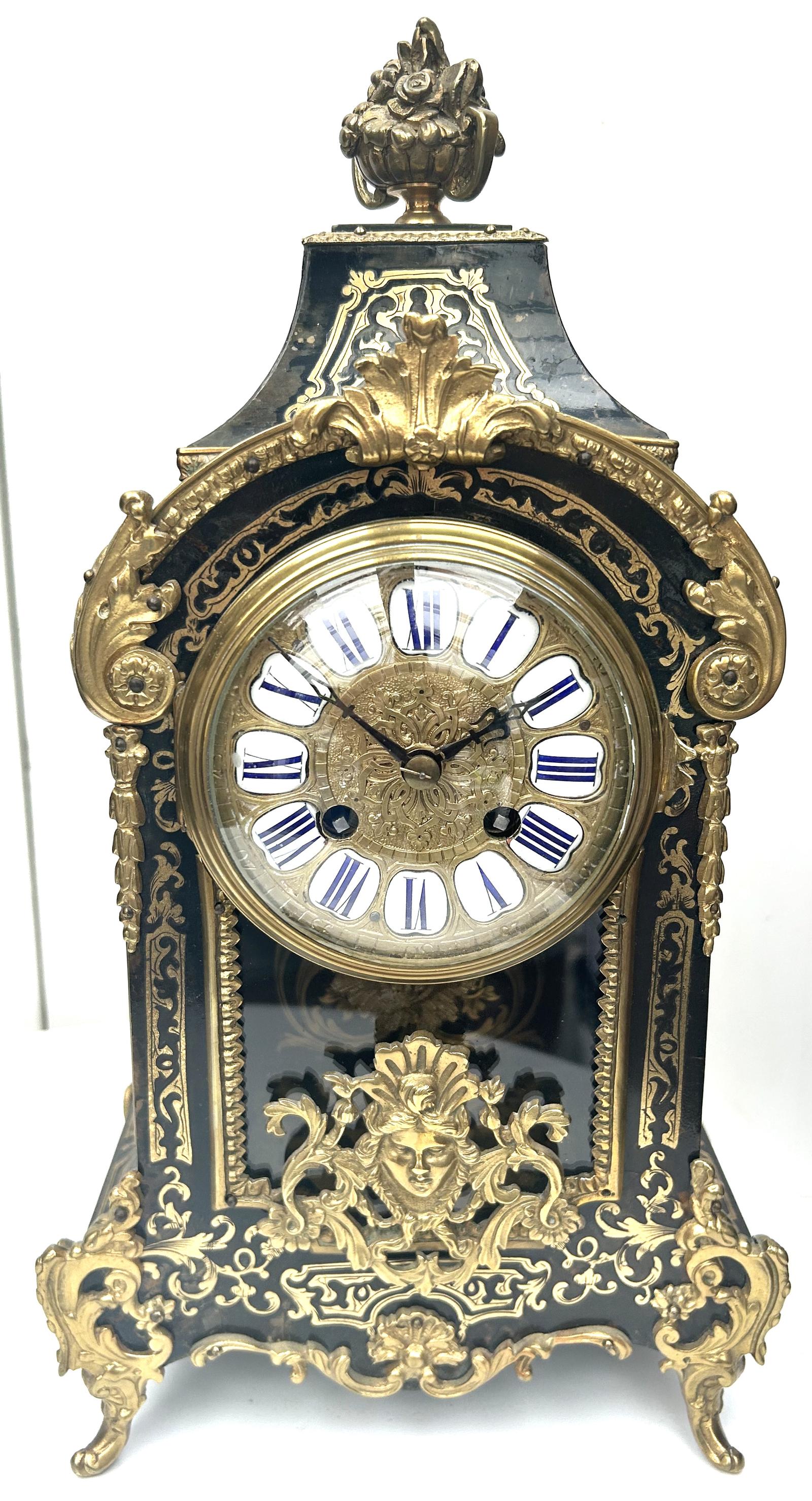 Incredible French Boulle Ormolu Inlay 8 Day Visible Pendulum Mantle Clock