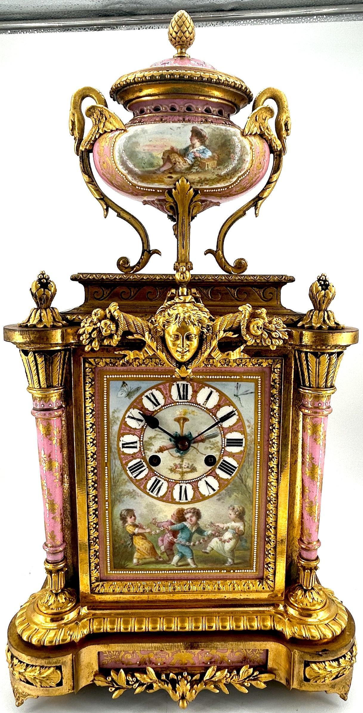 Incredible French Bronze Ormolu Hand Painted Sevres Panel Mantle Clock ca.1850