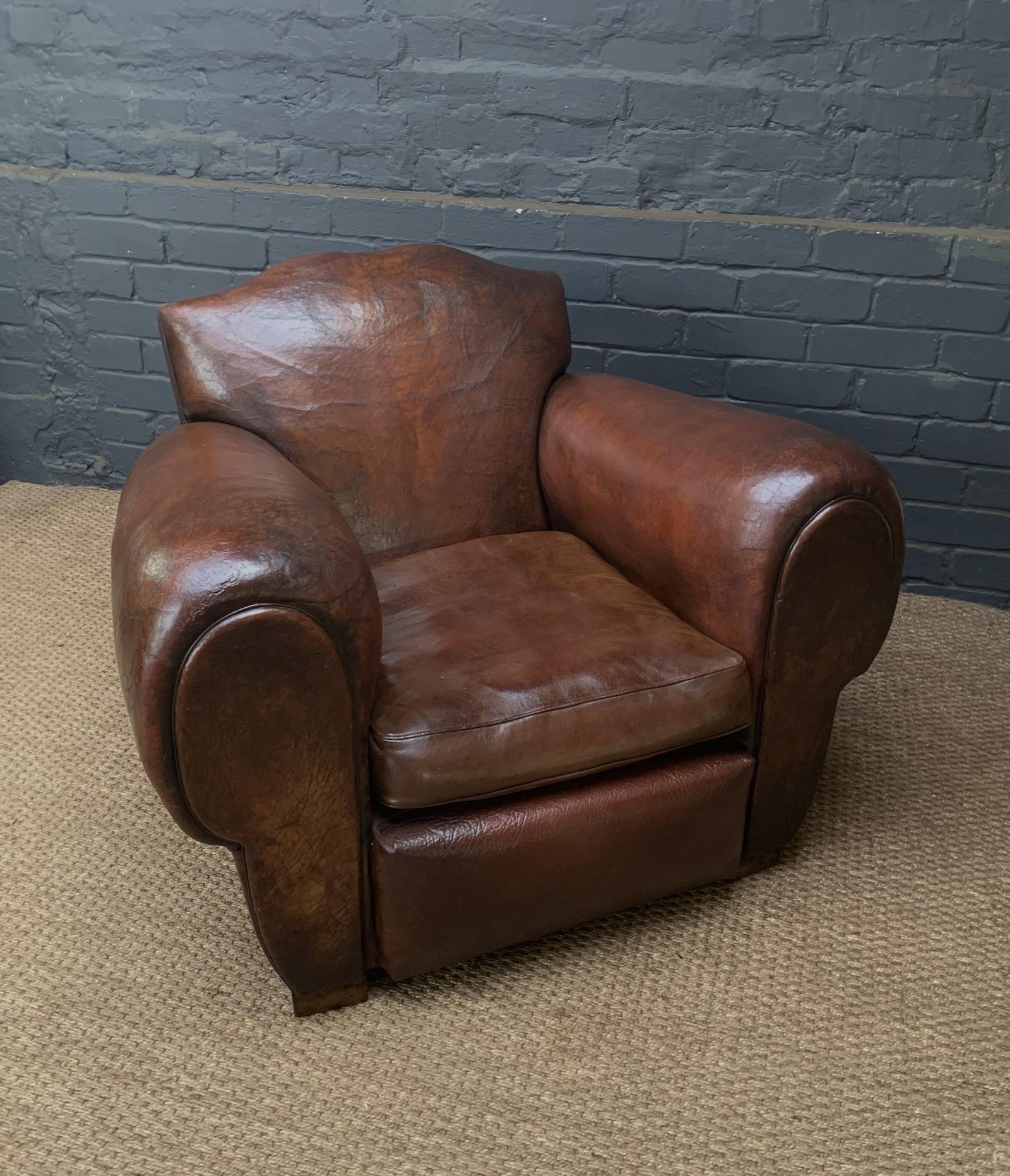 Incredible French Leather Club Chair, Havana Moustache Model c.1930 (1 of 11)