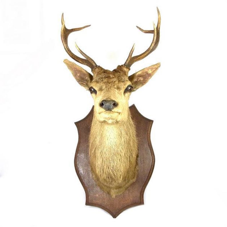 Incredible Large Taxidermy Eight Pointed Red Stags Head Trophy Mounted on Wooden Wall Hanging Shield