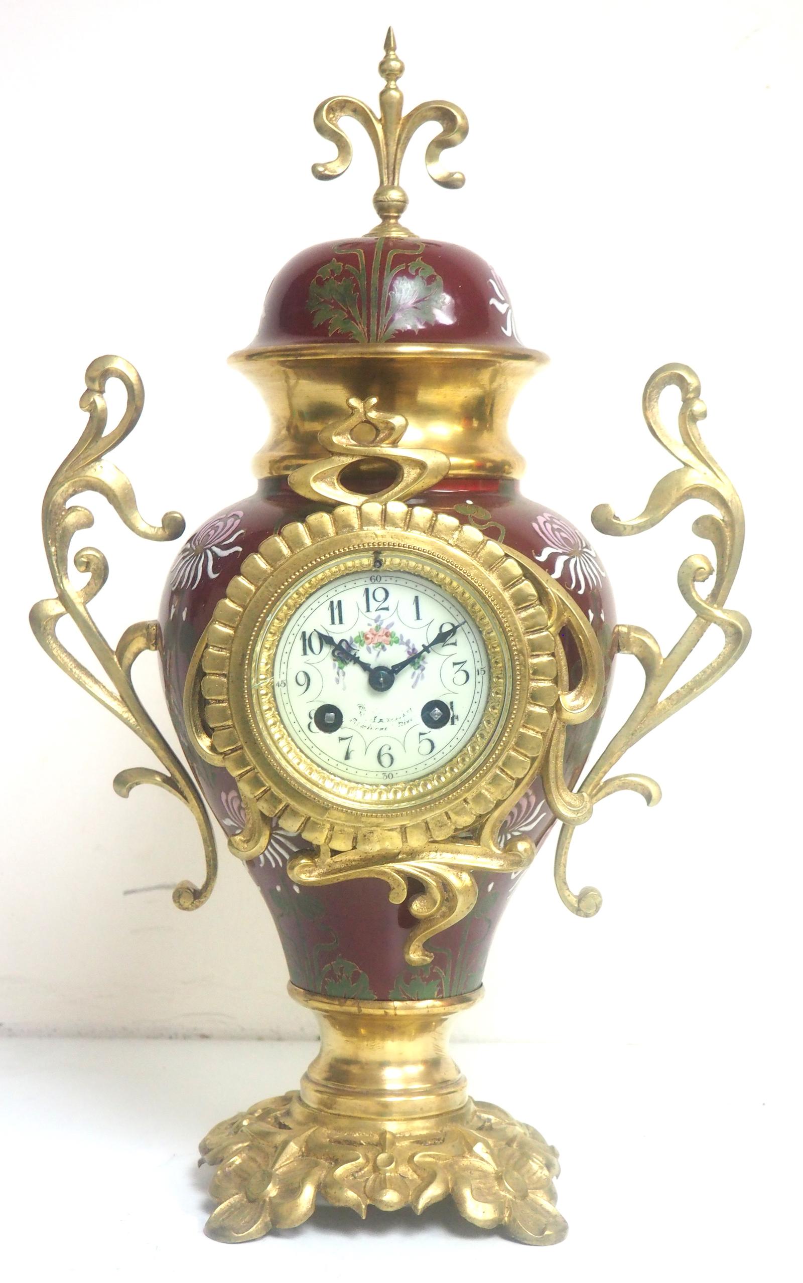 Incredible Red Art Nouveau Tulip Mantel Clock – Porcelain Mantle Clock C1900 (1 of 8)