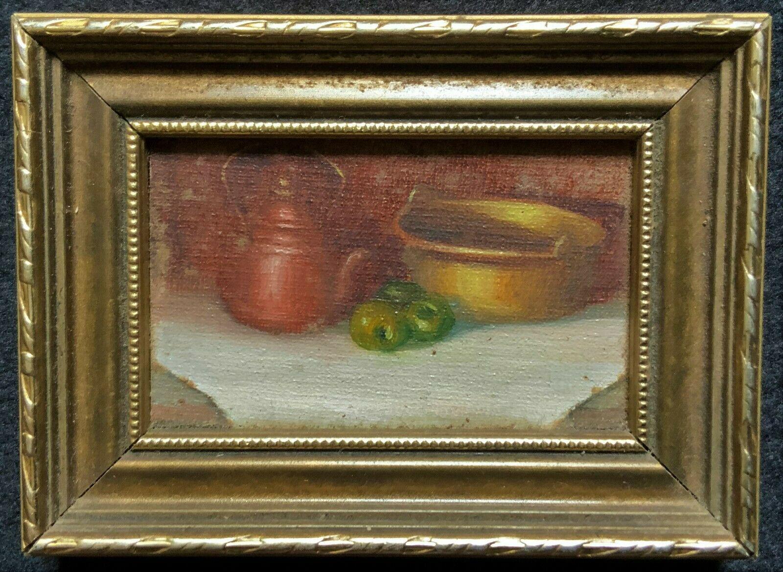 Incredible Vintage Miniature Oil on Board Painting of Fruit & Jug