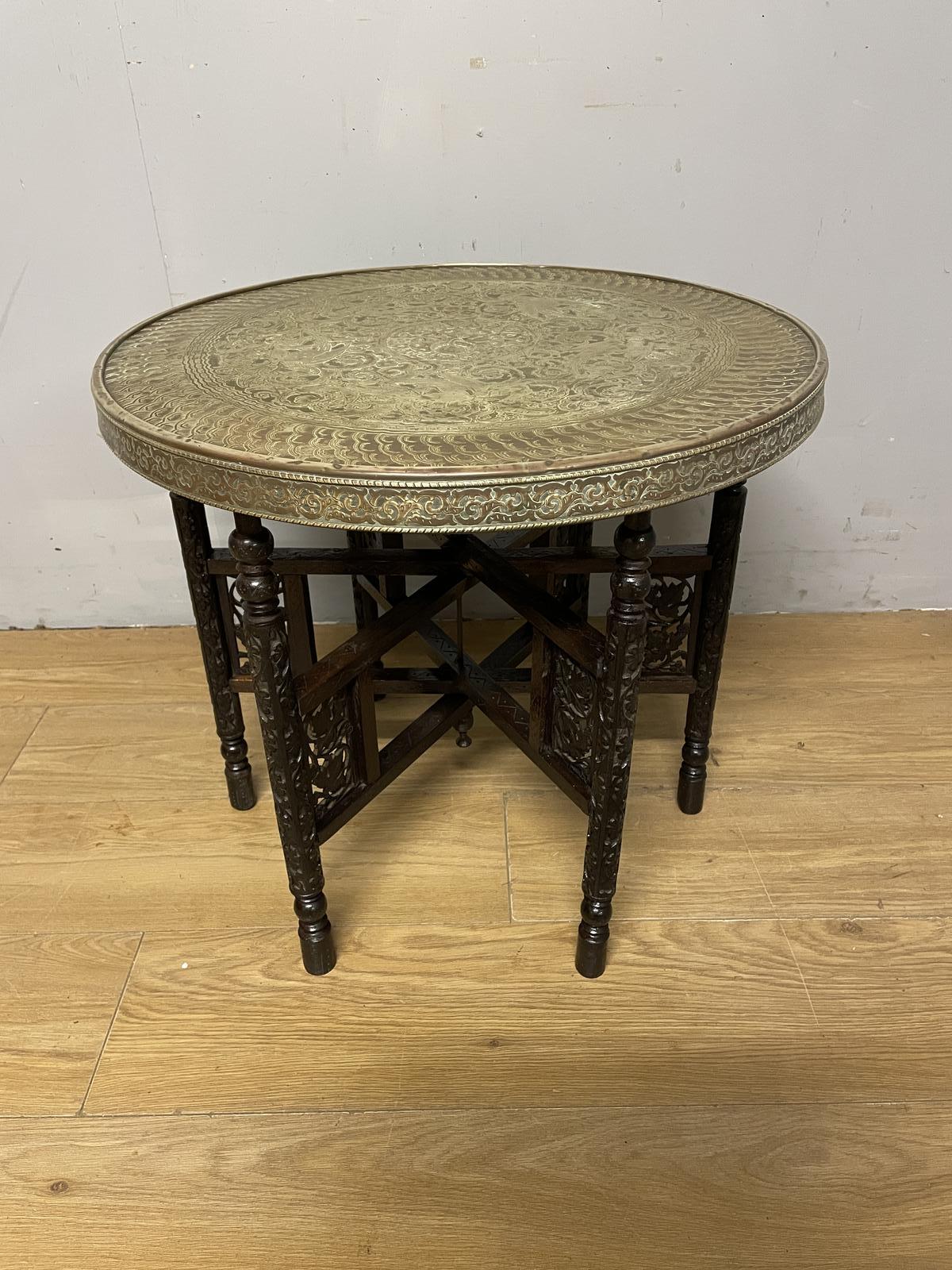 Indian Brass & Carved Hardwood Folding Table c.1920