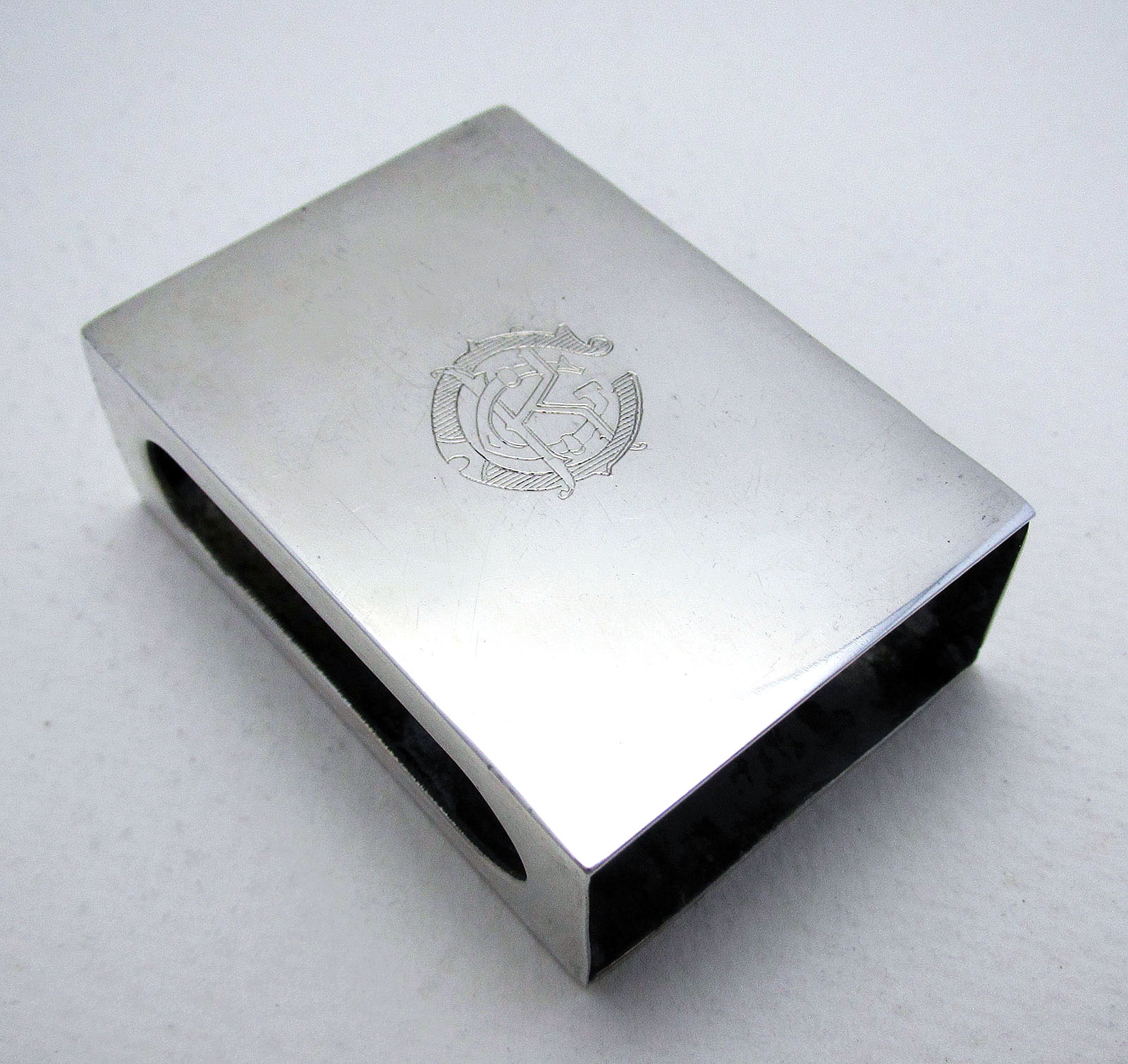 Indian Colonial Solid Silver 935 Antique Match Box Cover Sleeve Case Vesta Match Box Holder. J Manikrai & Sons, Karachi