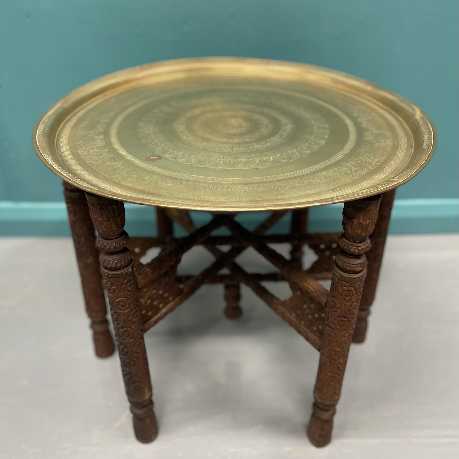 Indian Engraved Brass Tray Top Folding Table (1 of 6)