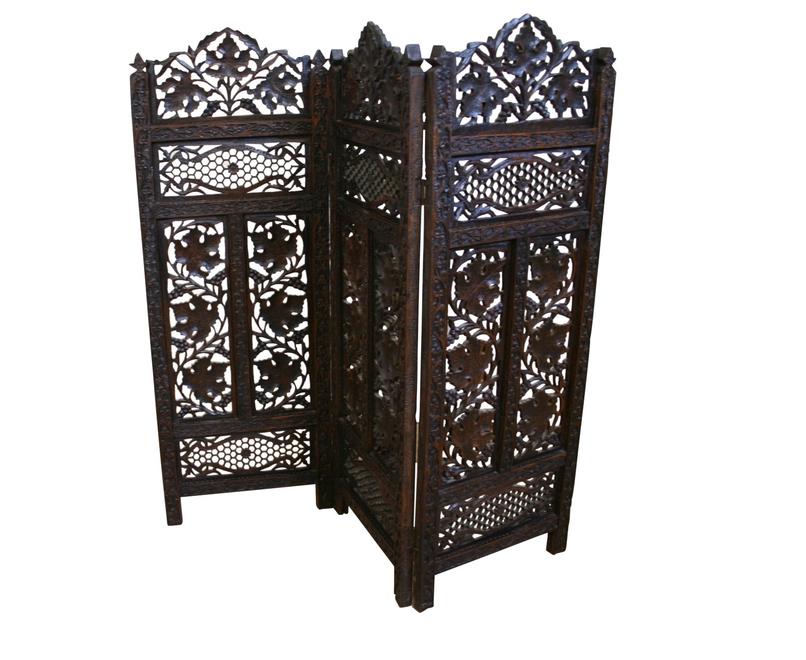 Indian Hardwood Carved Triple Folding Firescreen