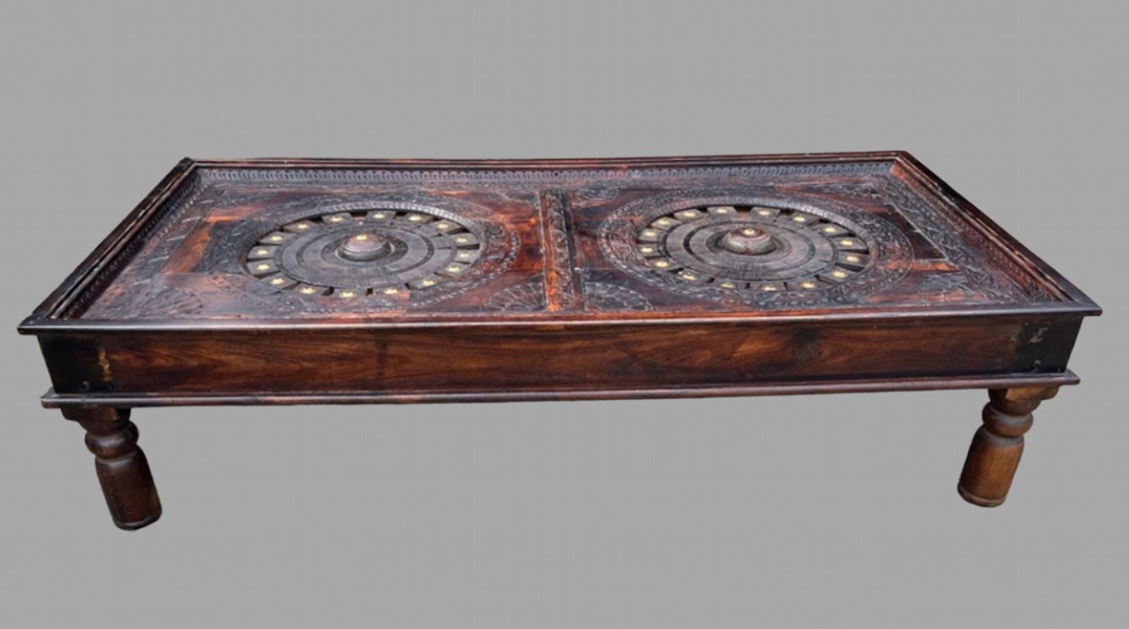 Indian Hardwood Glass Topped Door Coffee Table (1 of 6)