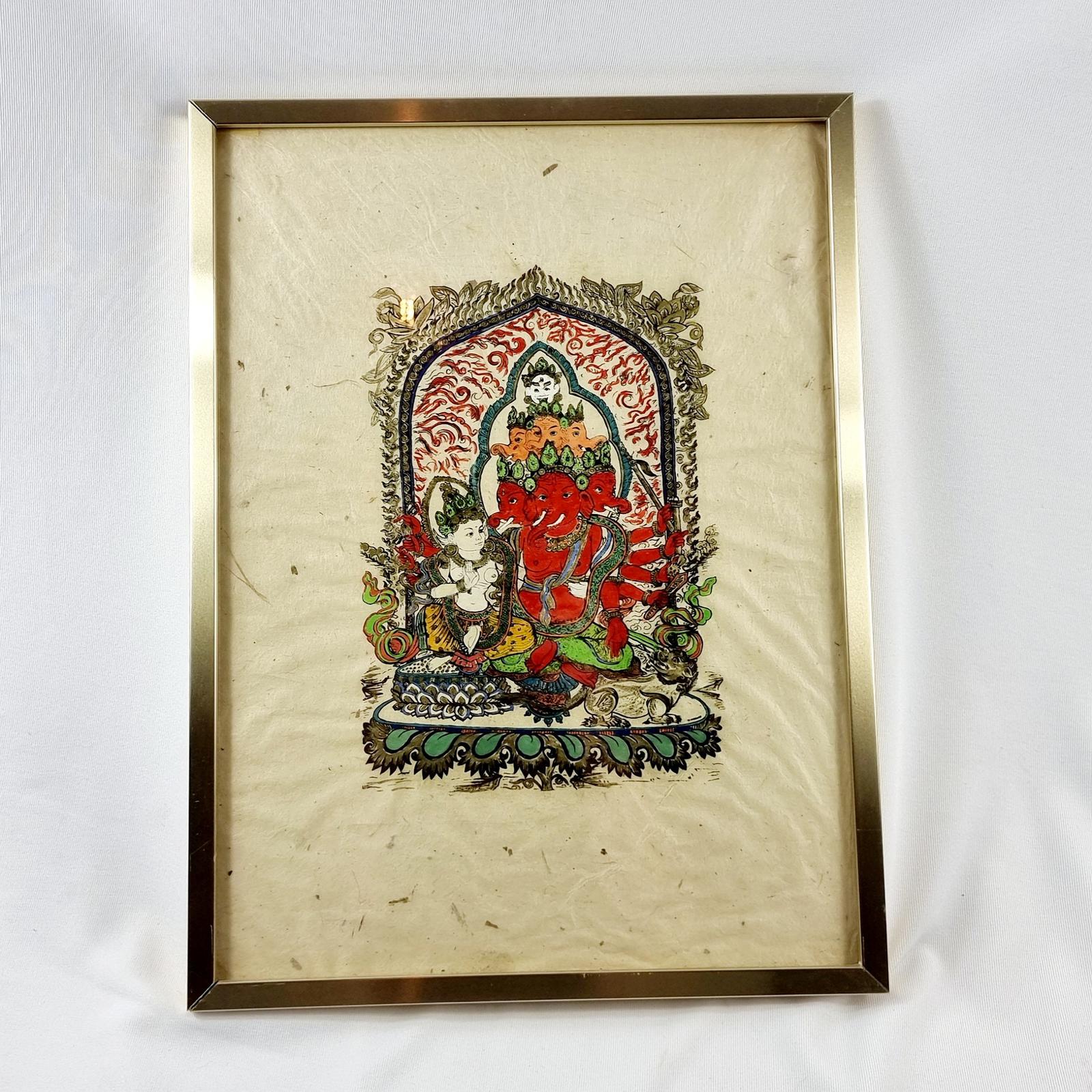 Indian Hindu Ganesha Block Print, Warecolour on Rice Paper