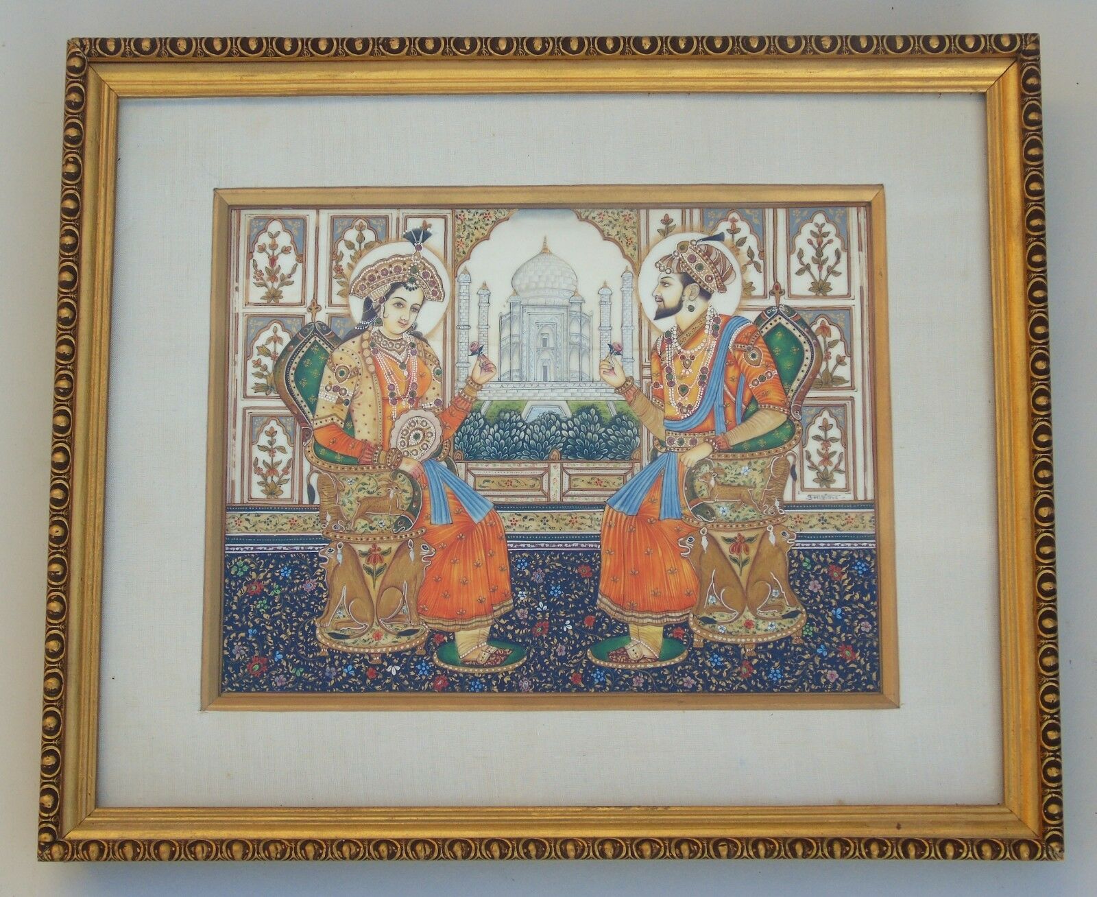 Indian Jewelled Painting in Gouache Mumtaz Mahal & Shah Jahan (1 of 1)