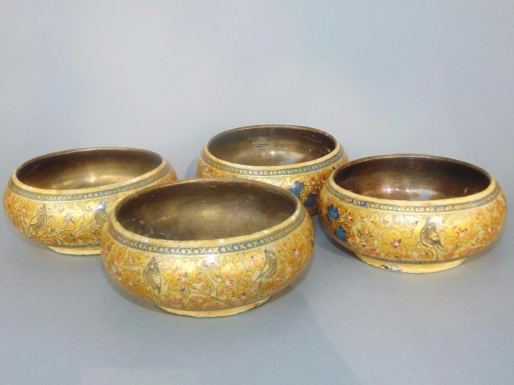 Indian Kashmir Hand Painted Papier Mache Set of 4 Bowls C.1910 (1 of 1)