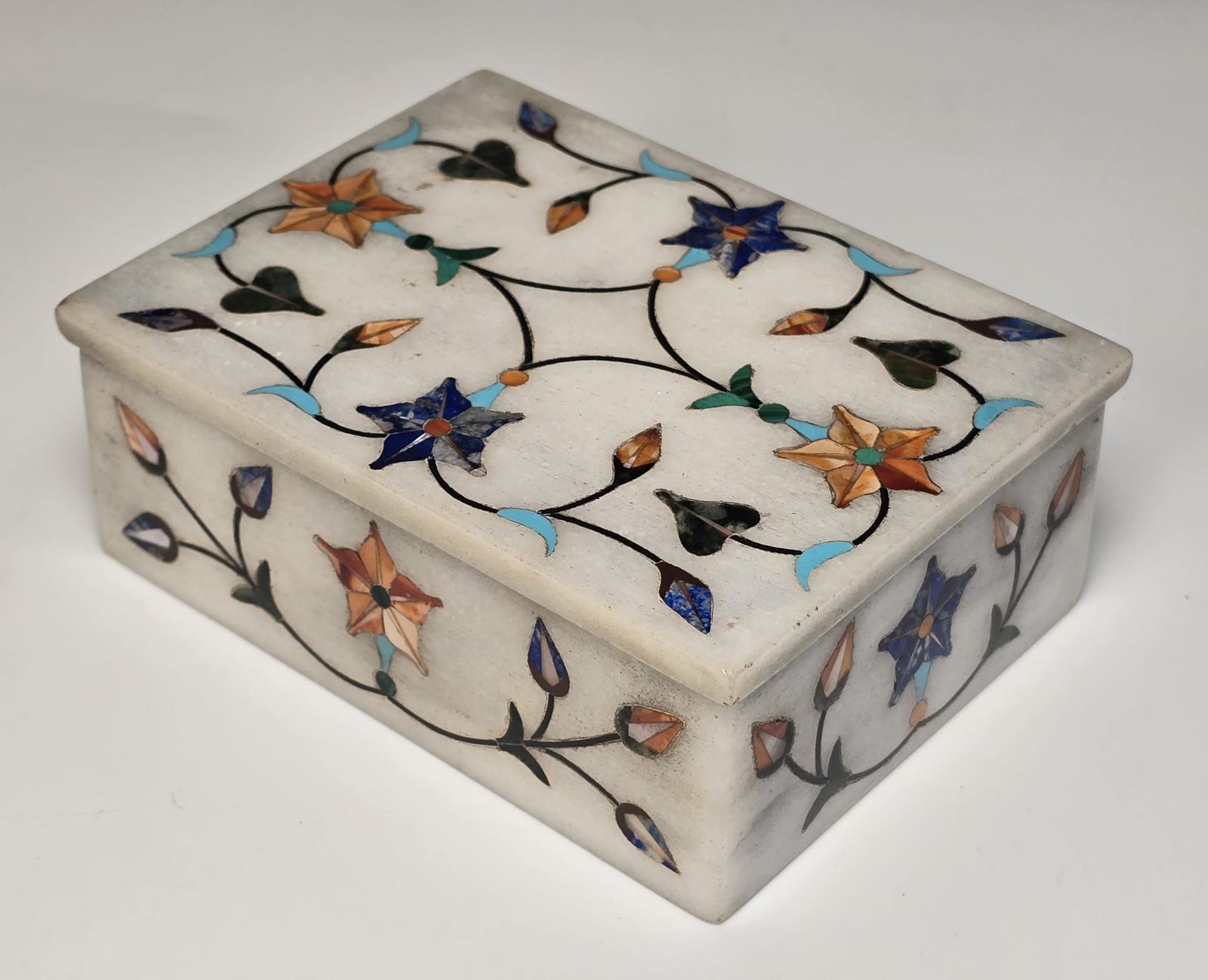 Indian Pietra Dura Marble & Hardstone Box c.1900 (1 of 13)