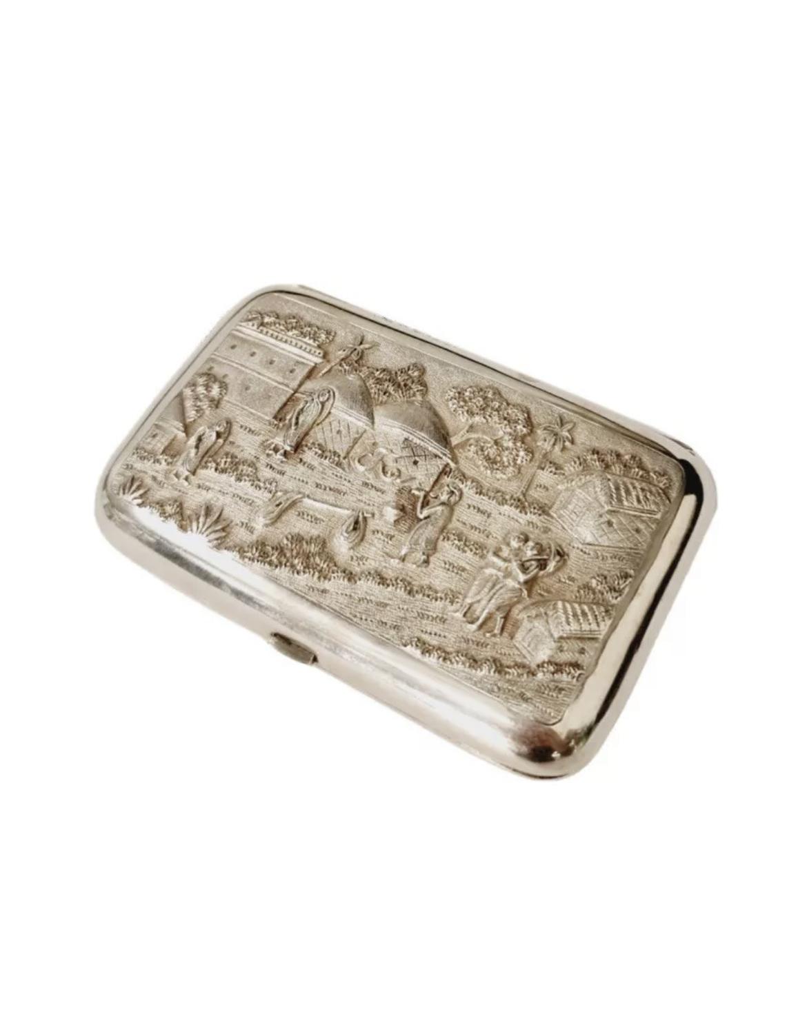 Indian Silver Cushioned Rectangular Cigar Case - Figures in Village c.1900