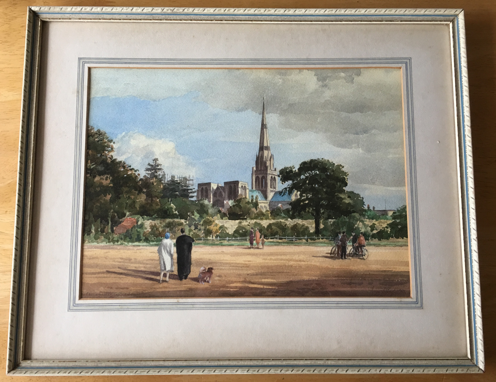 Indistinctly Signed Watercolour Painting of ‘Chichester Cathedral’, Dated 1967