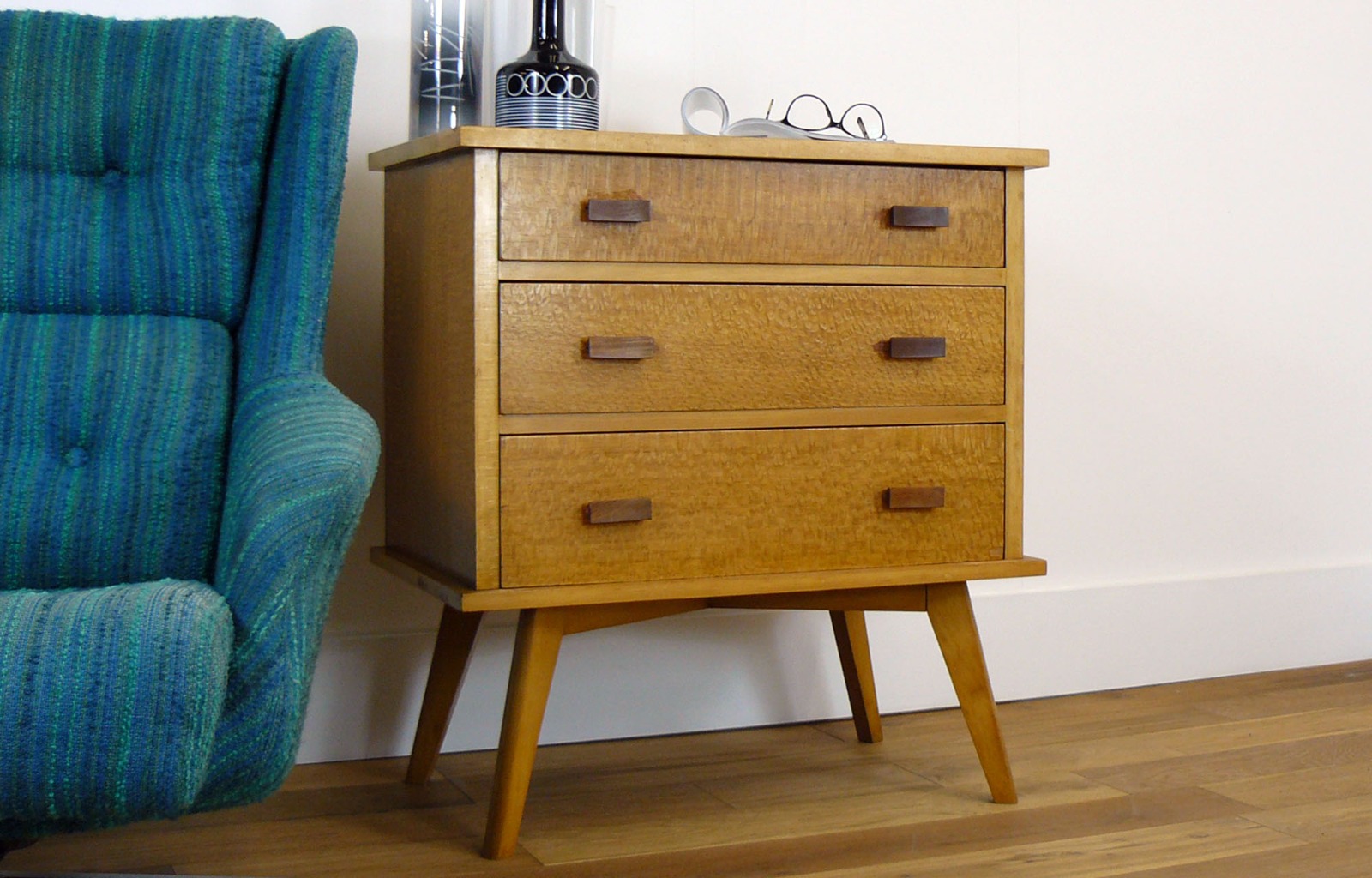 Individual Mid-Century Vintage Burred Sycamore Chest of Drawers (1 of 1)