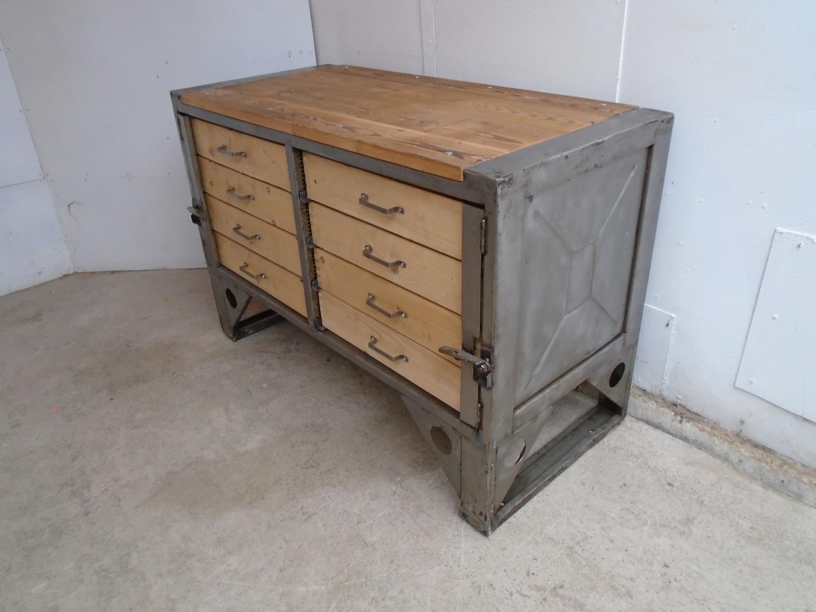 Industrial Metal / Pine 8 Drawer Kitchen Island / Restaurant Work Station