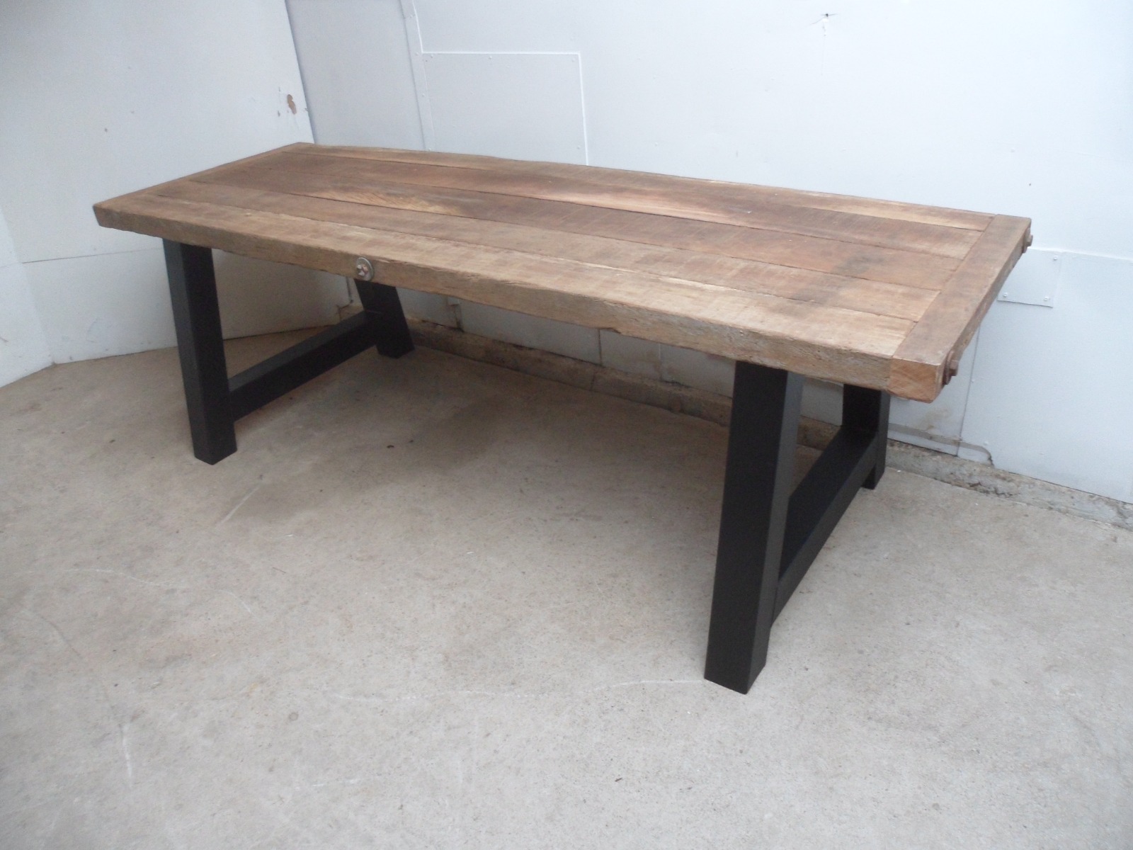 Industrial Tropical Hardwood Dining / Kitchen / Outdoor / Workstation Metal Table