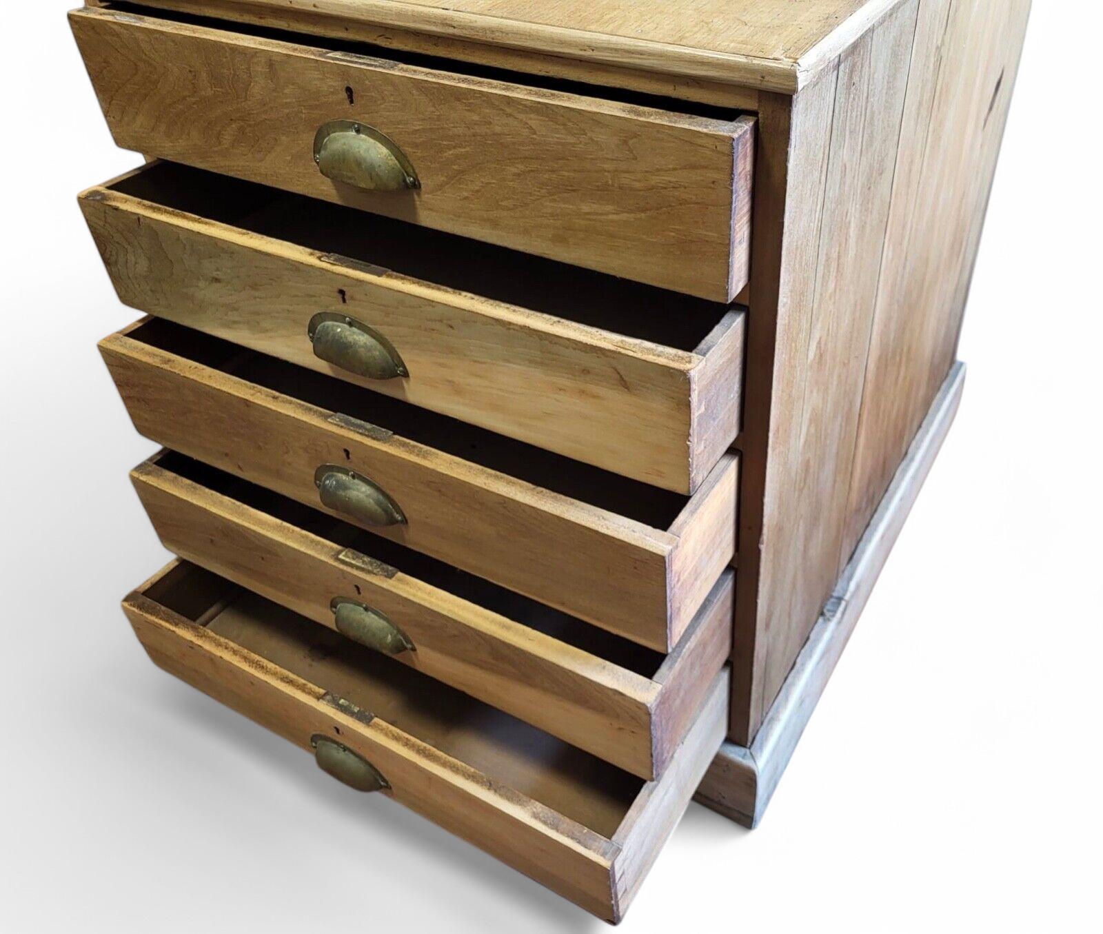 Industrial Victorian 5 Drawer Oak Chest of Drawers