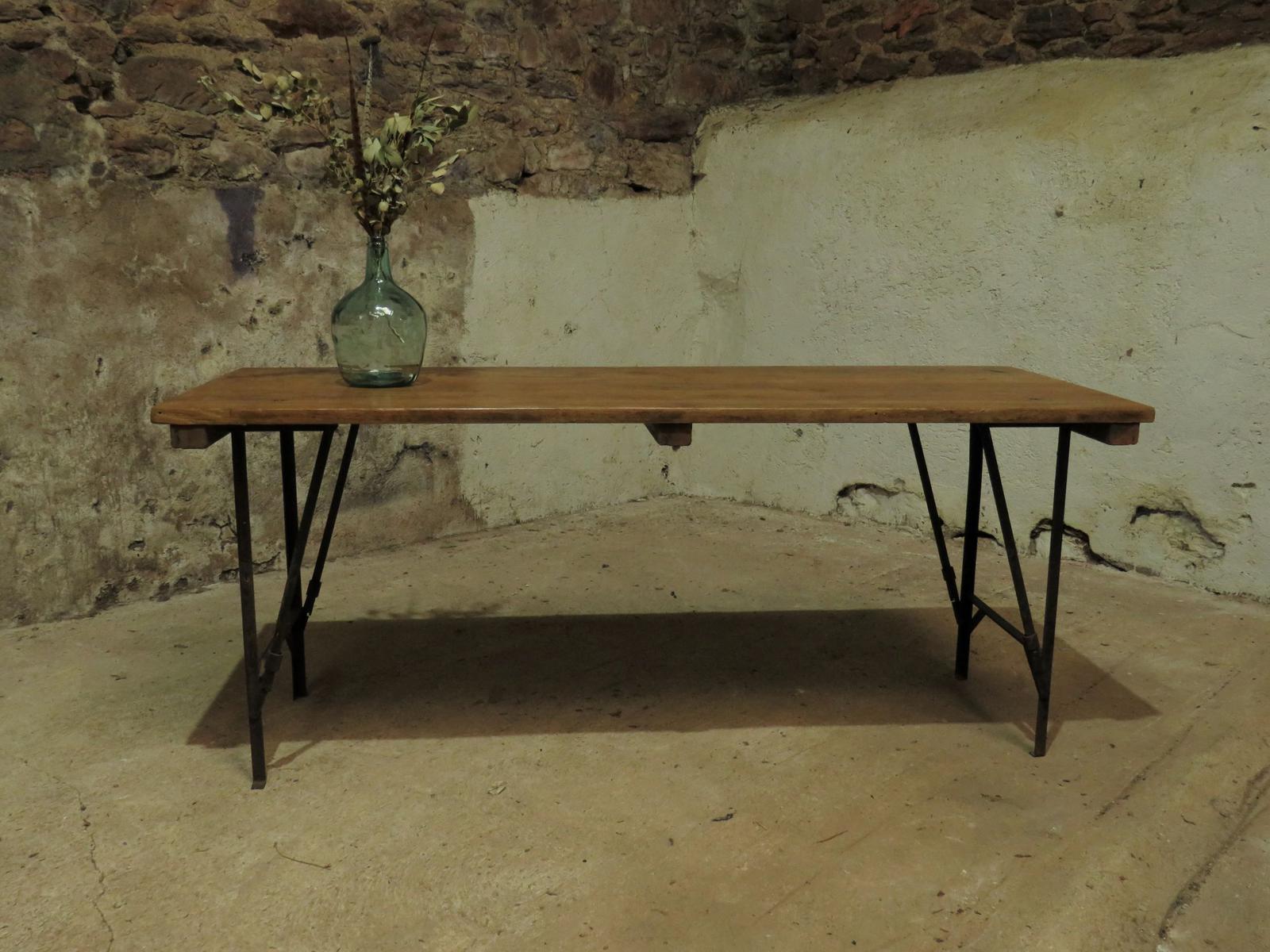 Industrial Vintage Folding Trestle Dining Table with Metal Legs & Reclaimed Top