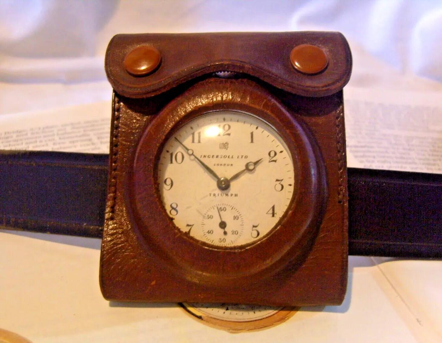 Ingersoll Pocket Watch Belt Watch Holder 1960s Brown Leather