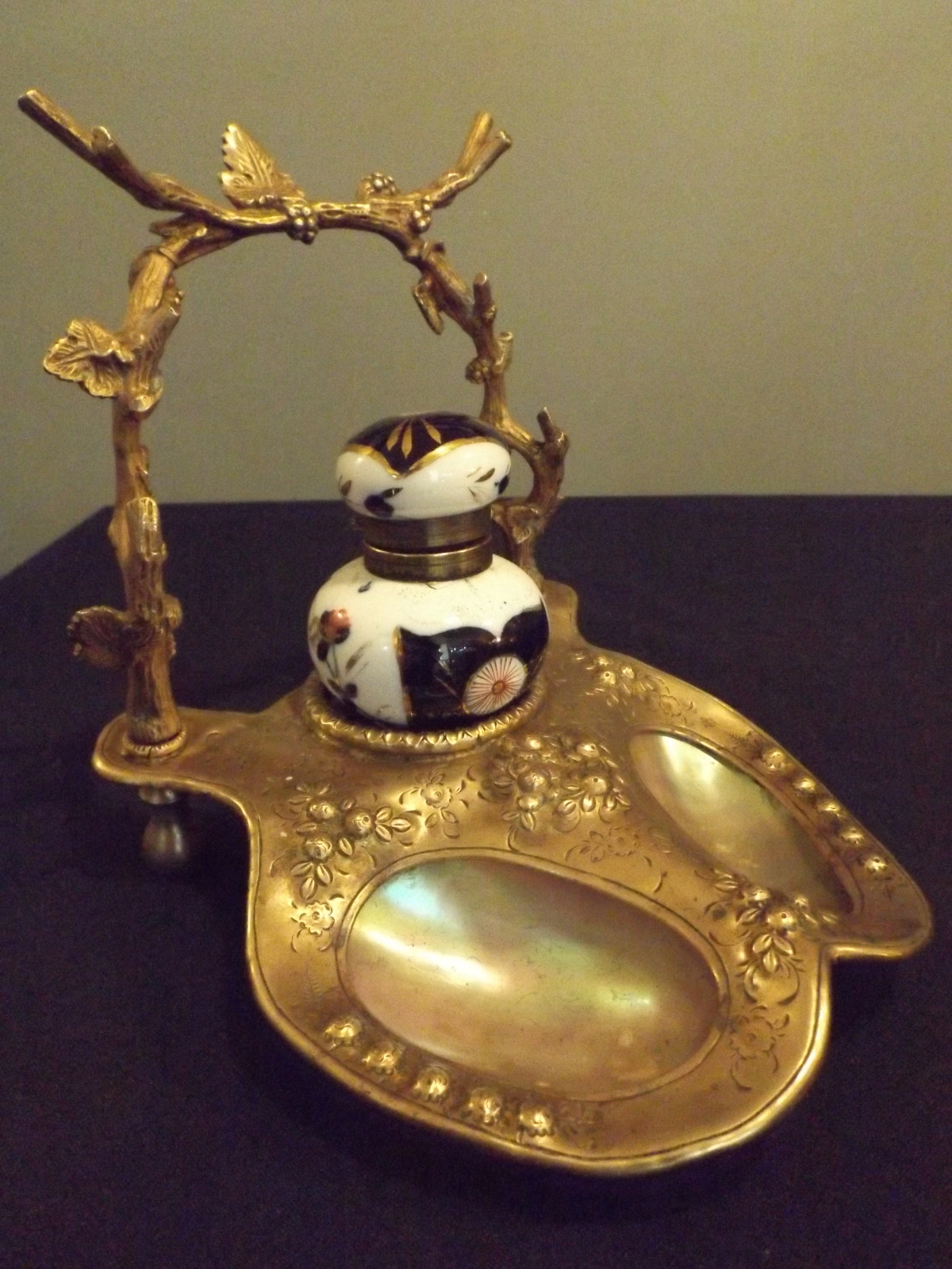 Ink Stand Brass & Mother of Pearl c.1880