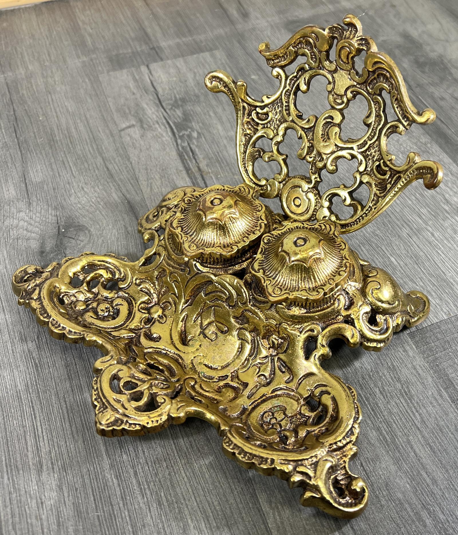 Inkwell Set Vintage French Brass Ornate Desk Accessory