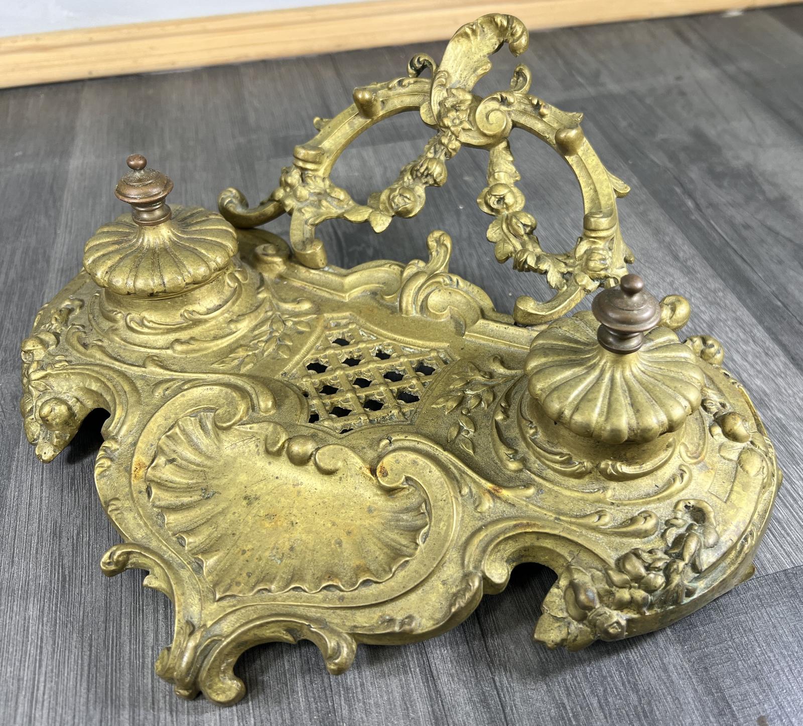 Inkwell Set Vintage French Brass Ornate Desk Stand Accessory