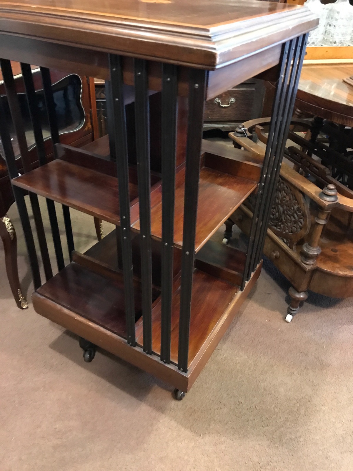 Inlaid Antique Revolving Bookcase (1 of 9)