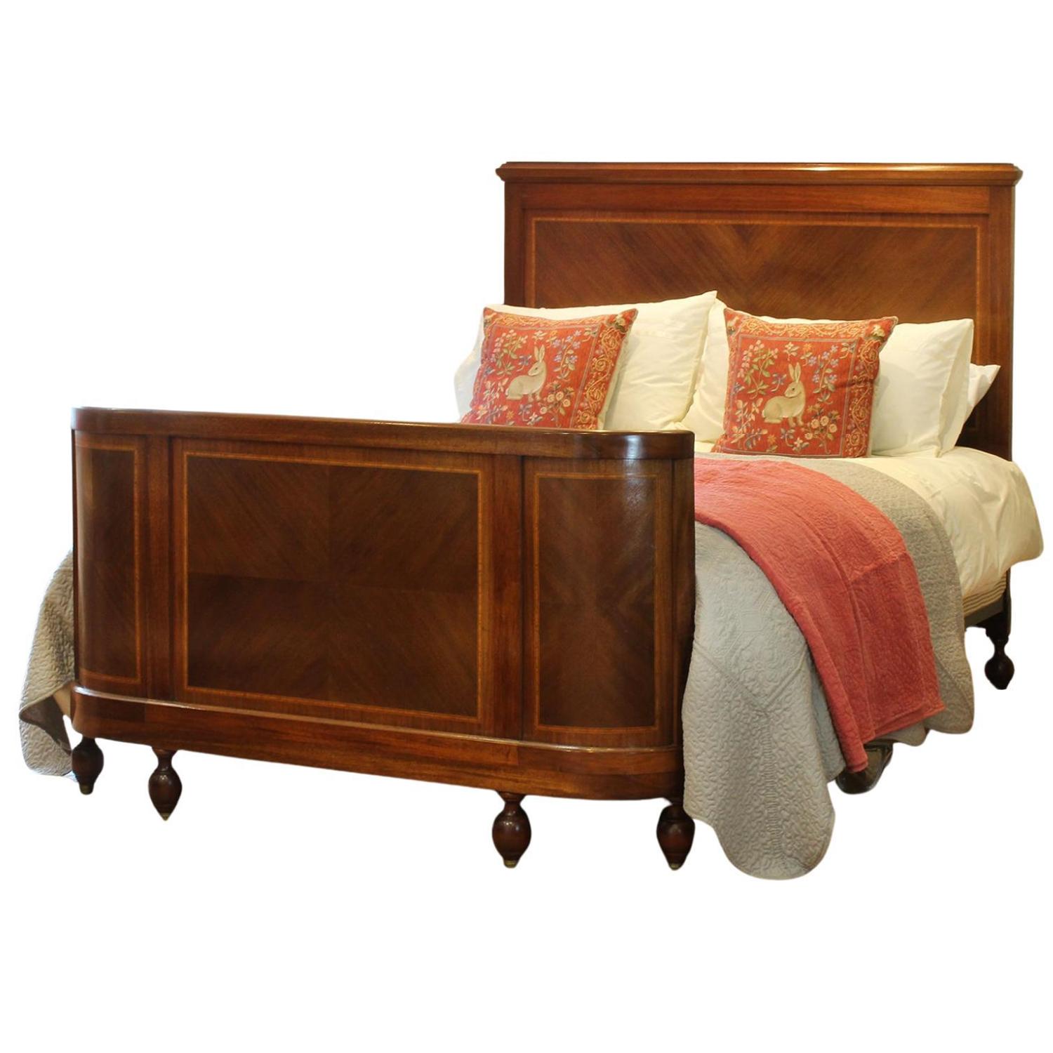Inlaid Bow Foot Mahogany Antique Wooden Bed