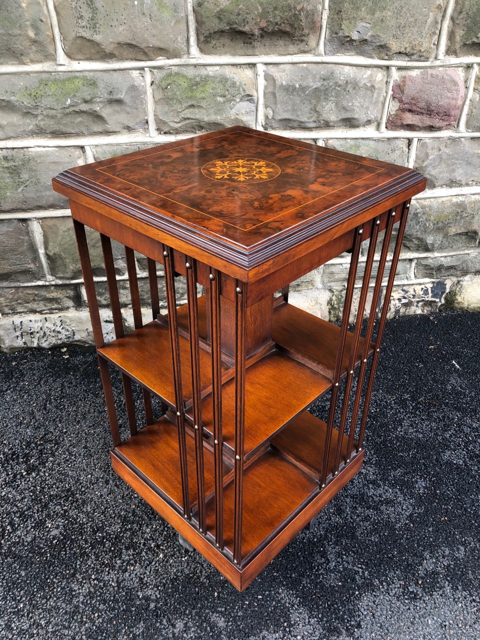 Inlaid Burr Walnut Revolving Library Bookcase