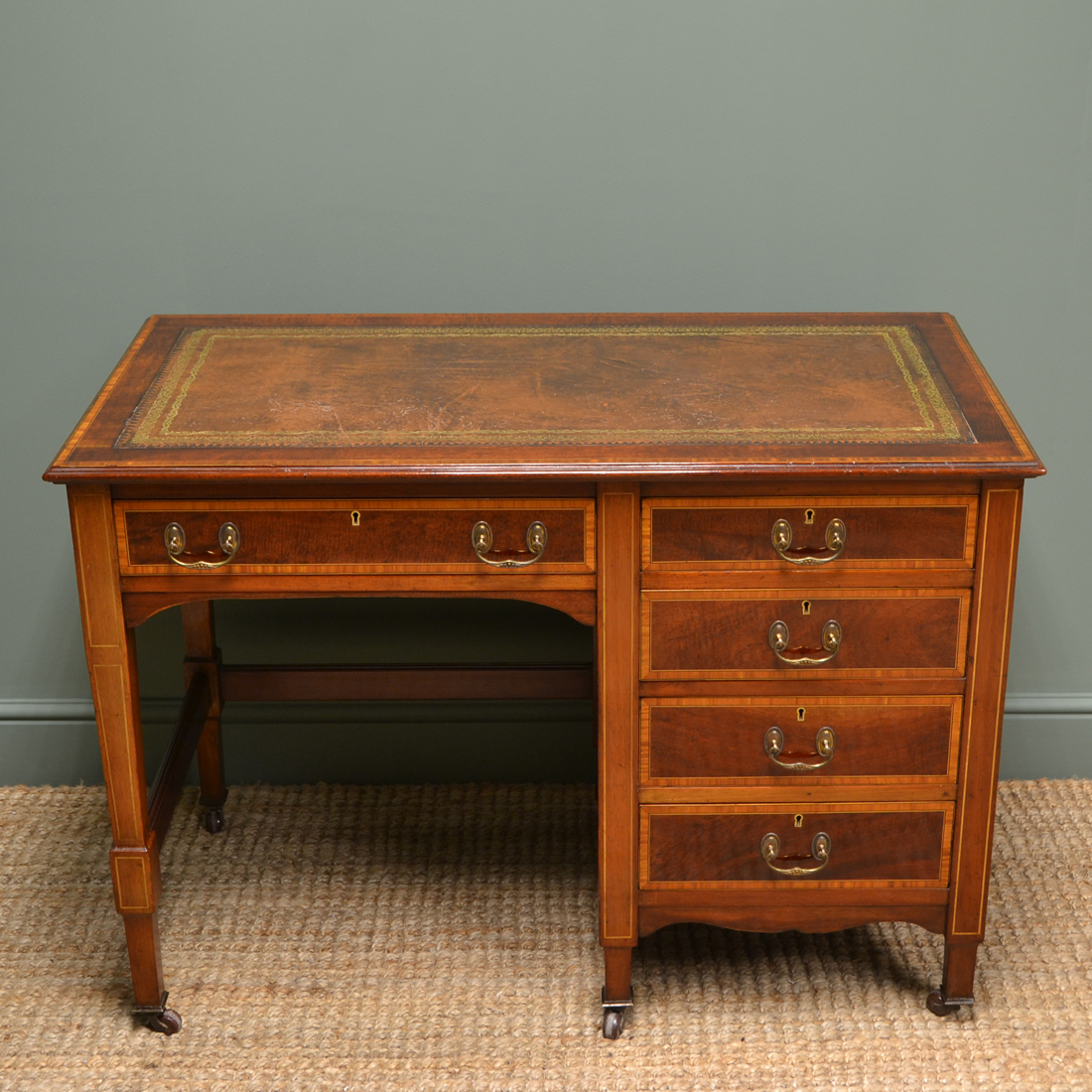 Inlaid Edwardian Mahogany Antique Desk by Jas Shoolbred