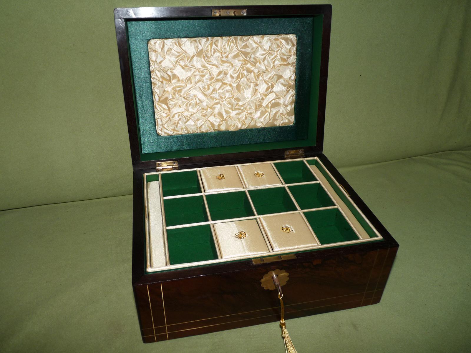Inlaid Figured Walnut Jewellery Box + Tray c.1870