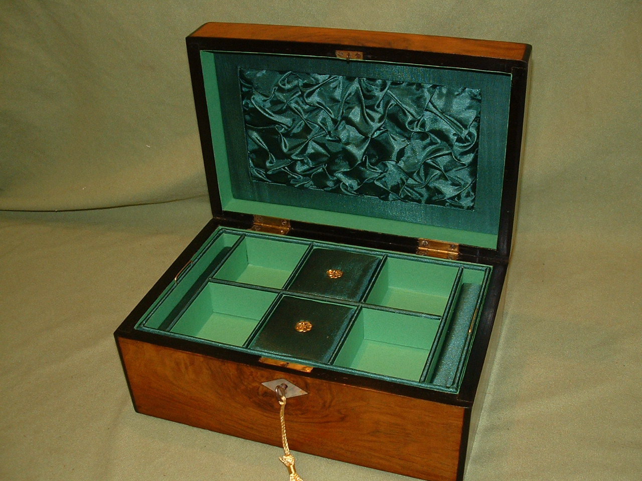 Inlaid Figured Walnut Jewellery Box + Tray c.1875