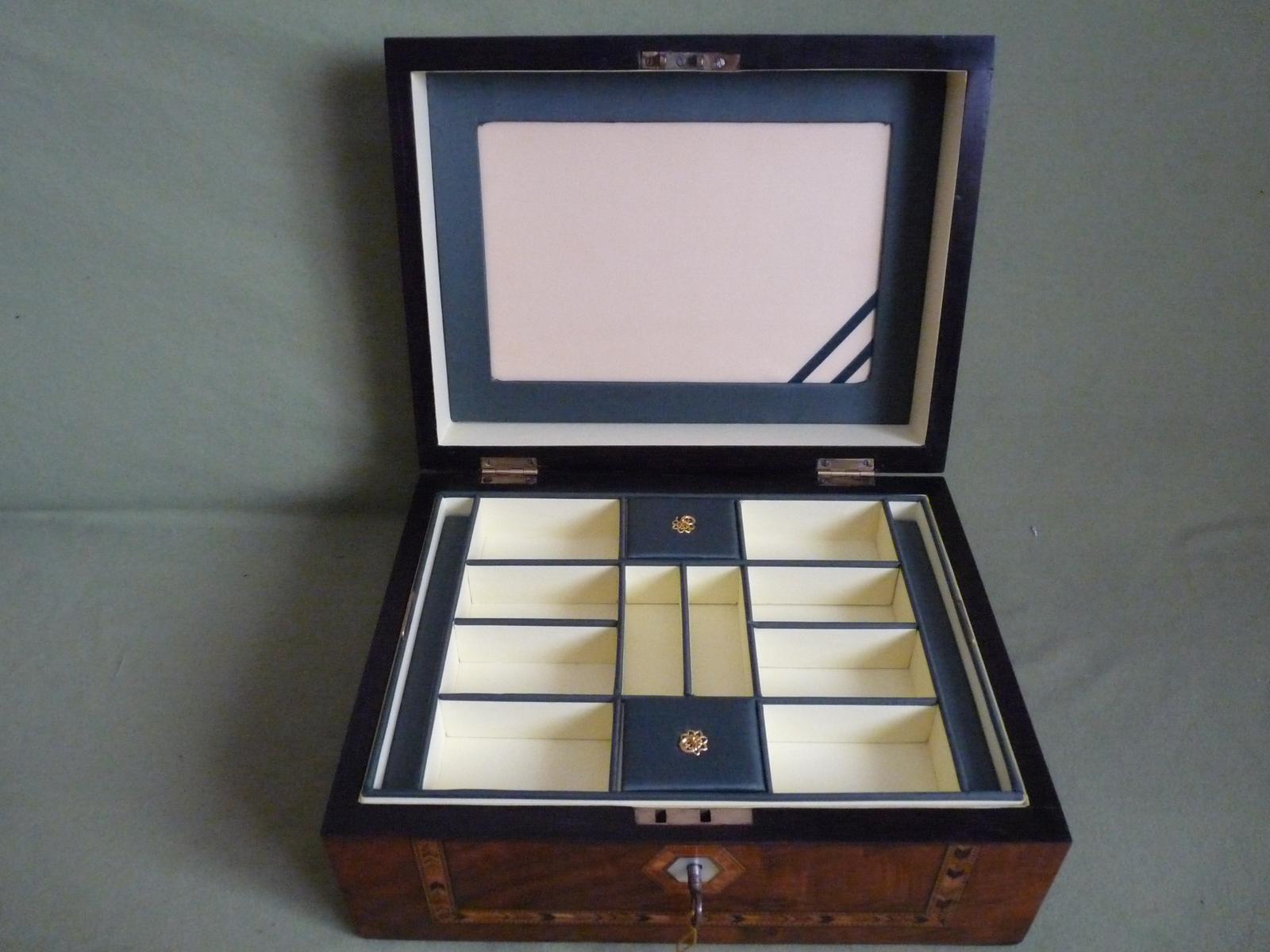 Inlaid Figured Walnut Jewellery Box + Tray c.1880