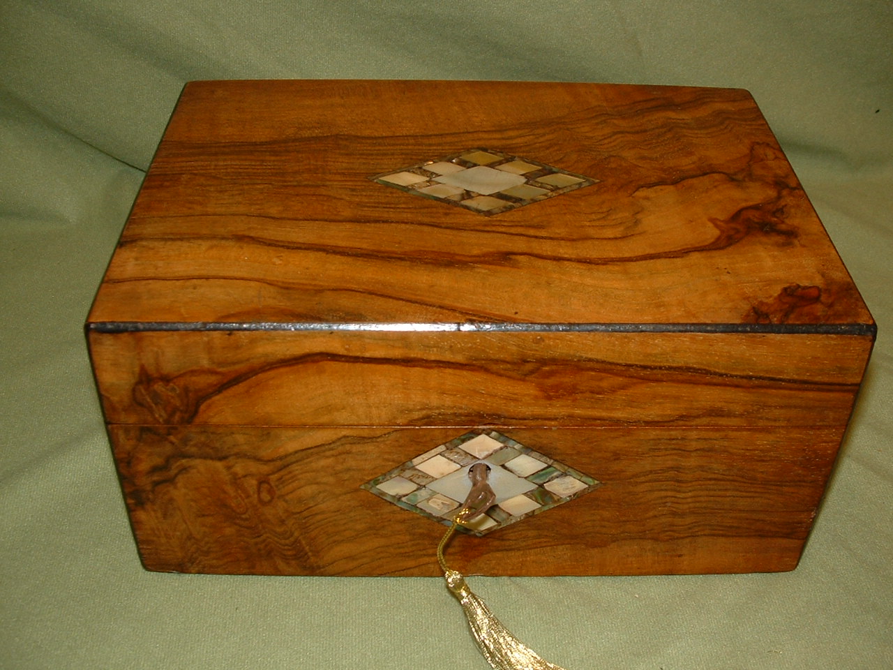 Inlaid Figured Walnut Jewellery - Table Box c.1870