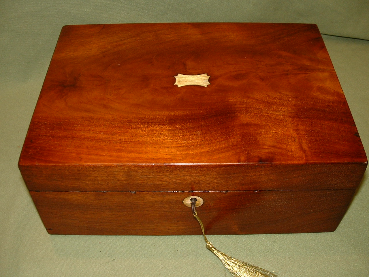 Inlaid Flame Mahogany Jewellery Box + Tray c.1870