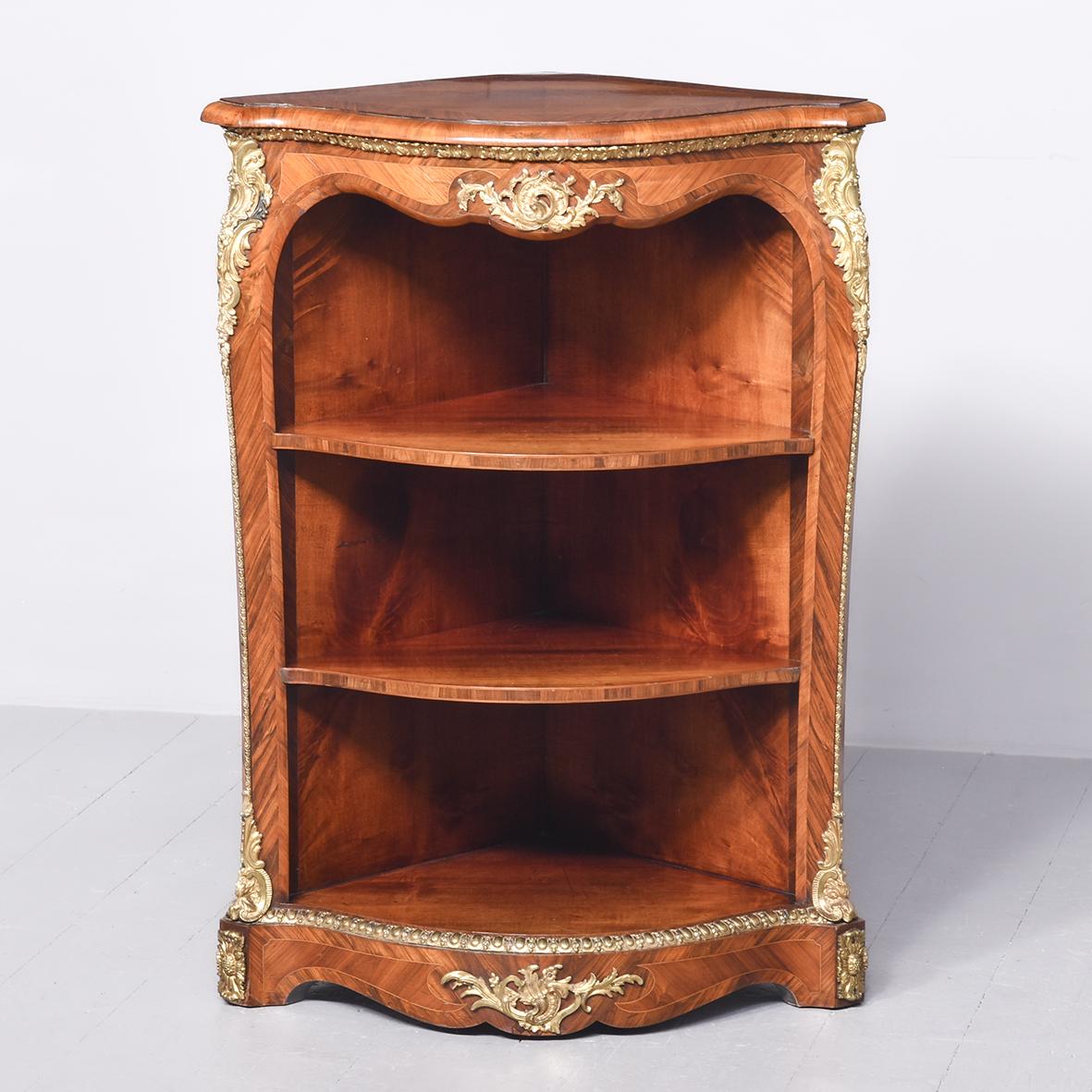 Inlaid Kingwood, Victorian, Ormolu Mounted Open Corner Cupboard