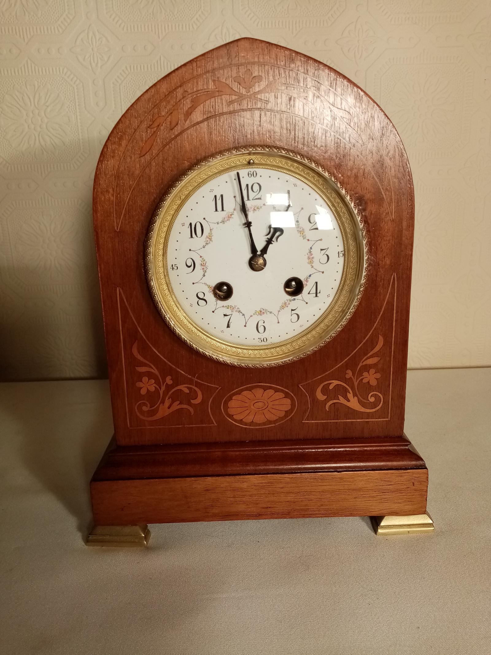 Inlaid Light Mahogany Lancet-top Mantel Clock
