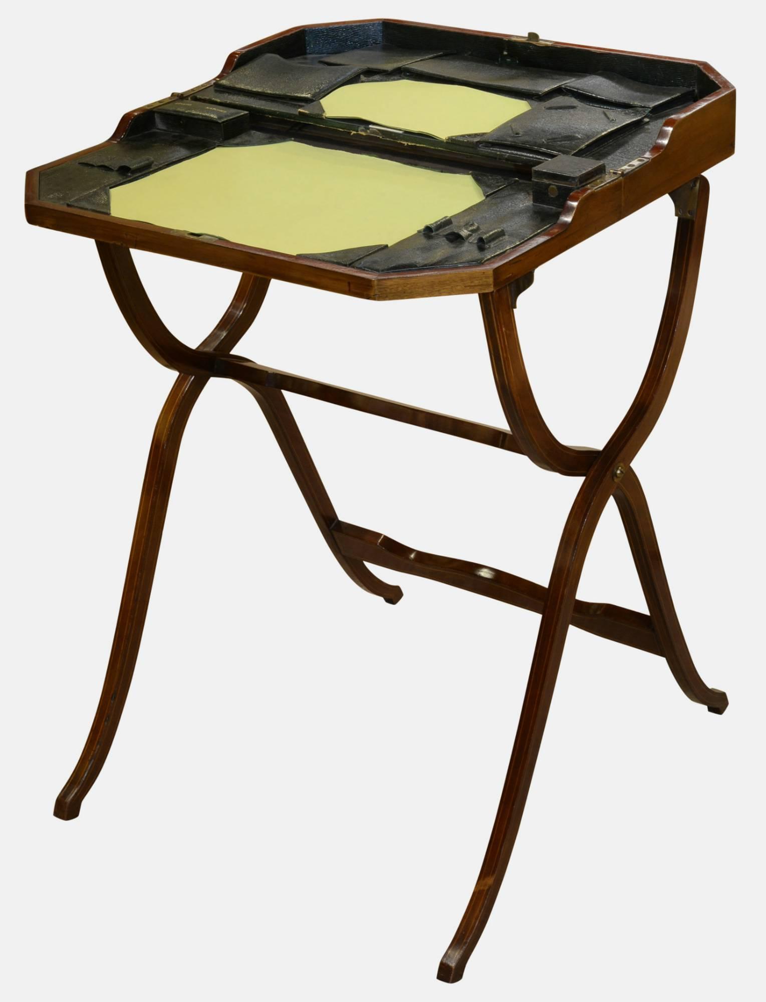 Inlaid Mahogany Campaign "style" Folding Desk c.1900
